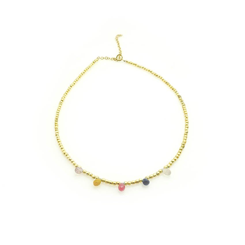 This beautiful necklace is made from beads of brass and plated with gold. The tear drops are an elegant touch that make this necklace a great accessory for any look