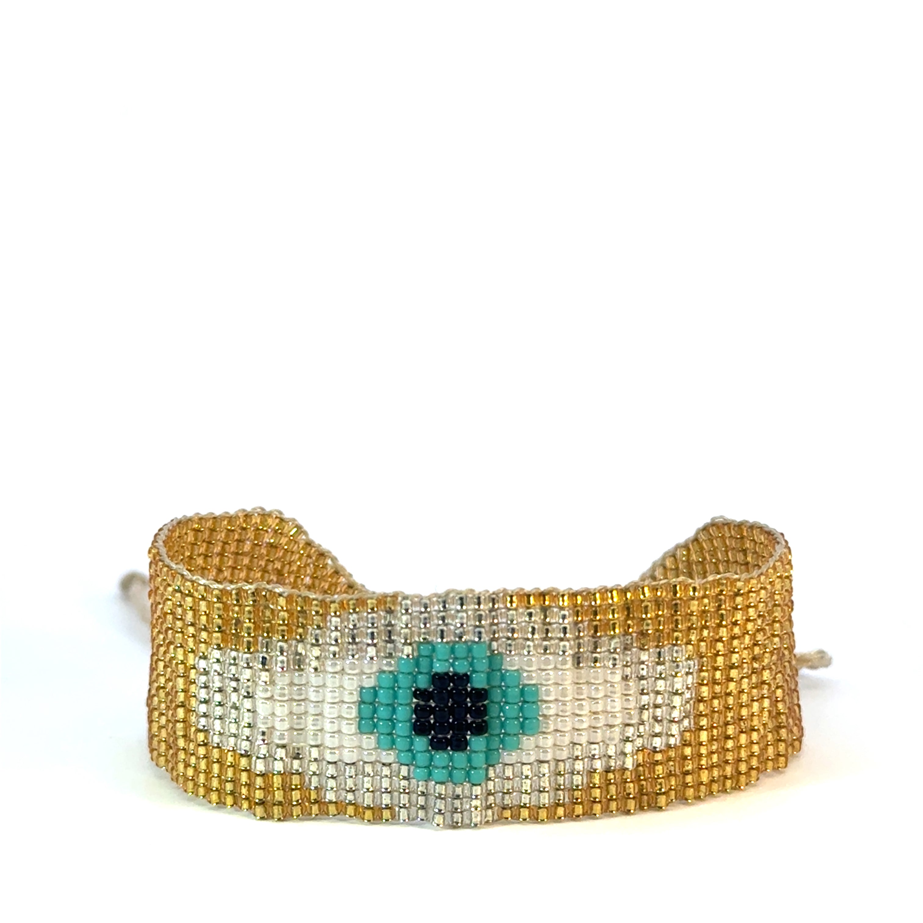 Crafted from Miyuki Japanese Beads, our Eye Miyuki Bracelet is a stunning piece handmade in Colombia. Each bead is intricately woven together to create a beautiful Eye pattern. Its adjustable design ensures a perfect fit for anyone. Elevate your style with this unique and expertly crafted bracelet.