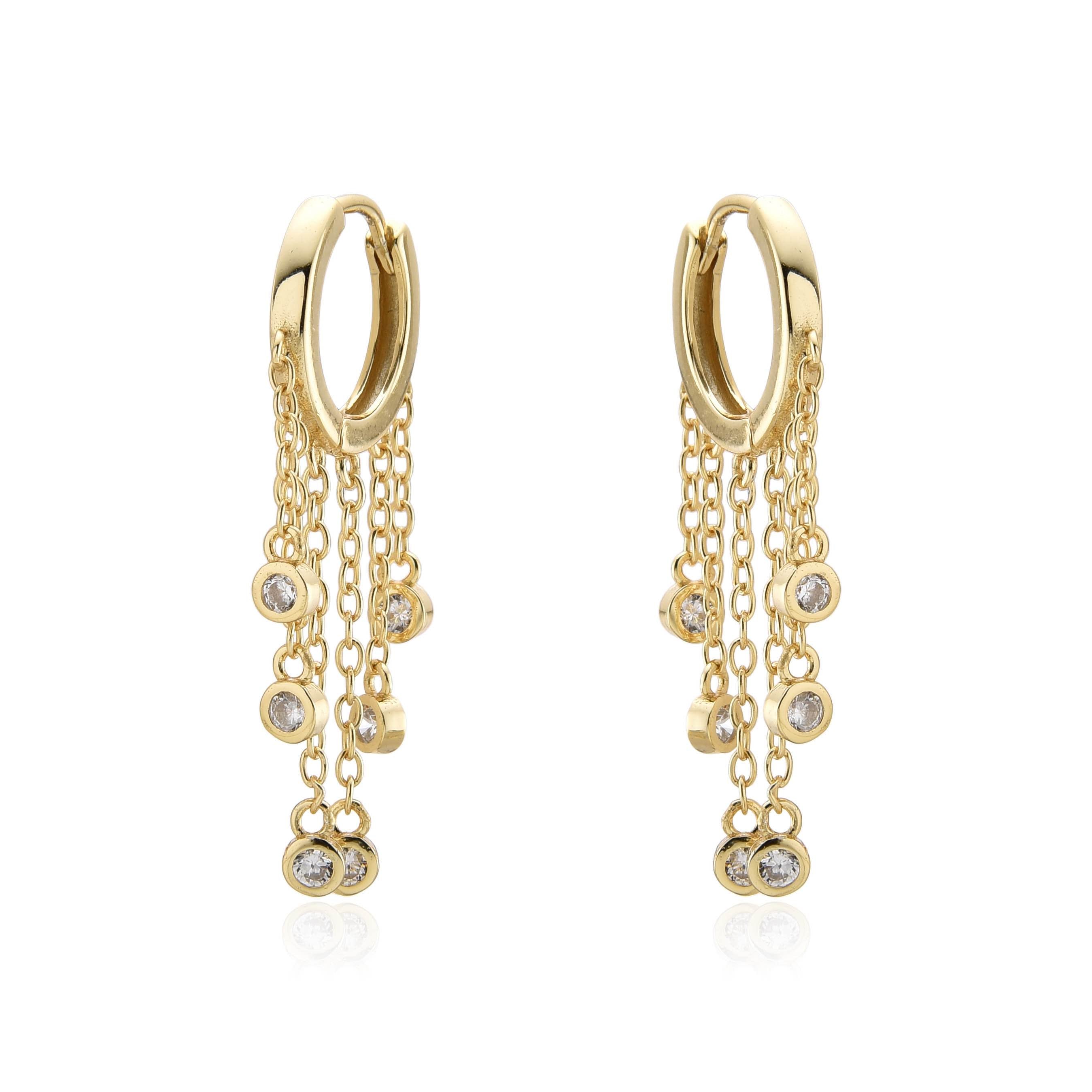 Crafted with precision and expertise, our Dainty Chains Small Huggies are a must-have accessory. Made with Sterling Silver 925 and Gold plated 14K, these huggies exude elegance. Embellished with Cubic Zircons, they offer a touch of sparkle to any outfit. Experience effortless style with our Dainty Chains Small Huggies.