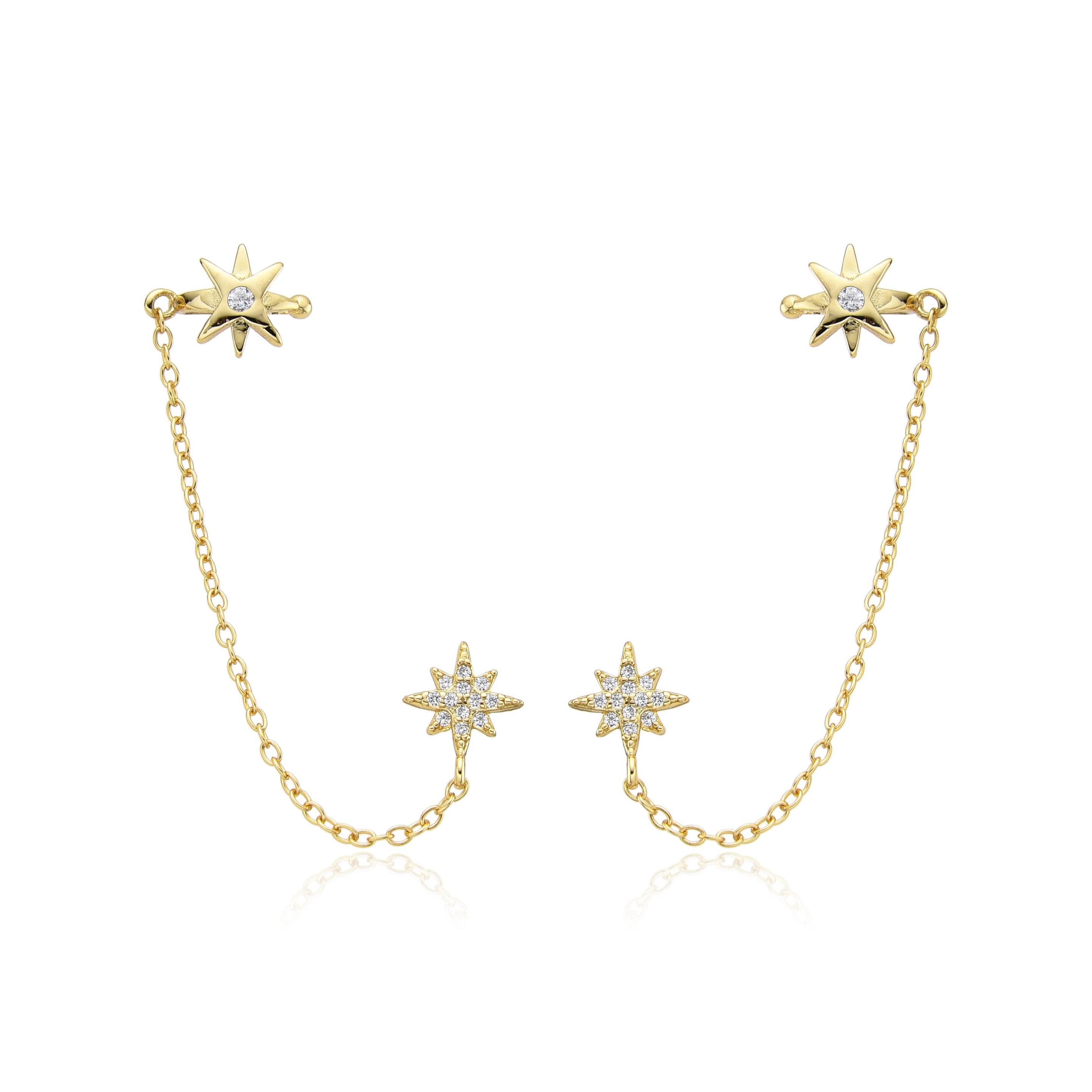 Dainty Ear Cuff Plain and Cz Starburst Stud
