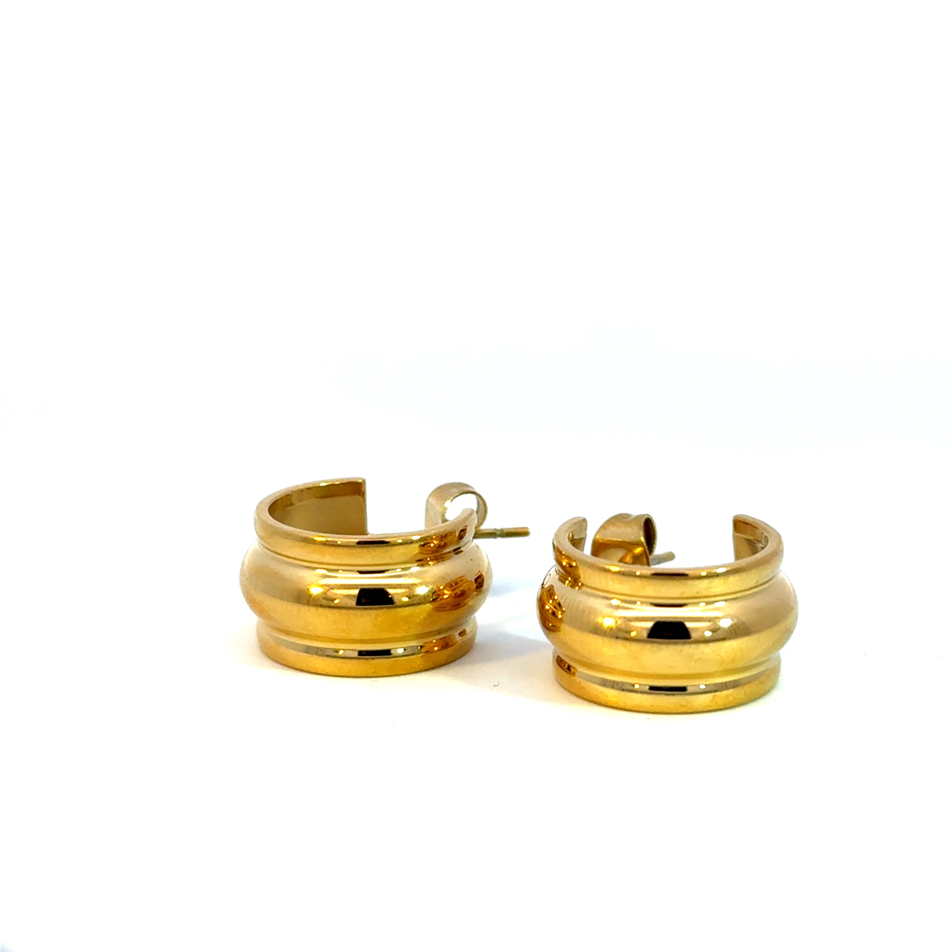 Upgrade your style with our elegant Gold Plated Hoop Earrings. Made with durable stainless steel and featuring a luxurious 14k gold plating, these earrings are the perfect addition to any outfit. Enhance your look and stand out from the crowd with these stunning hoops.