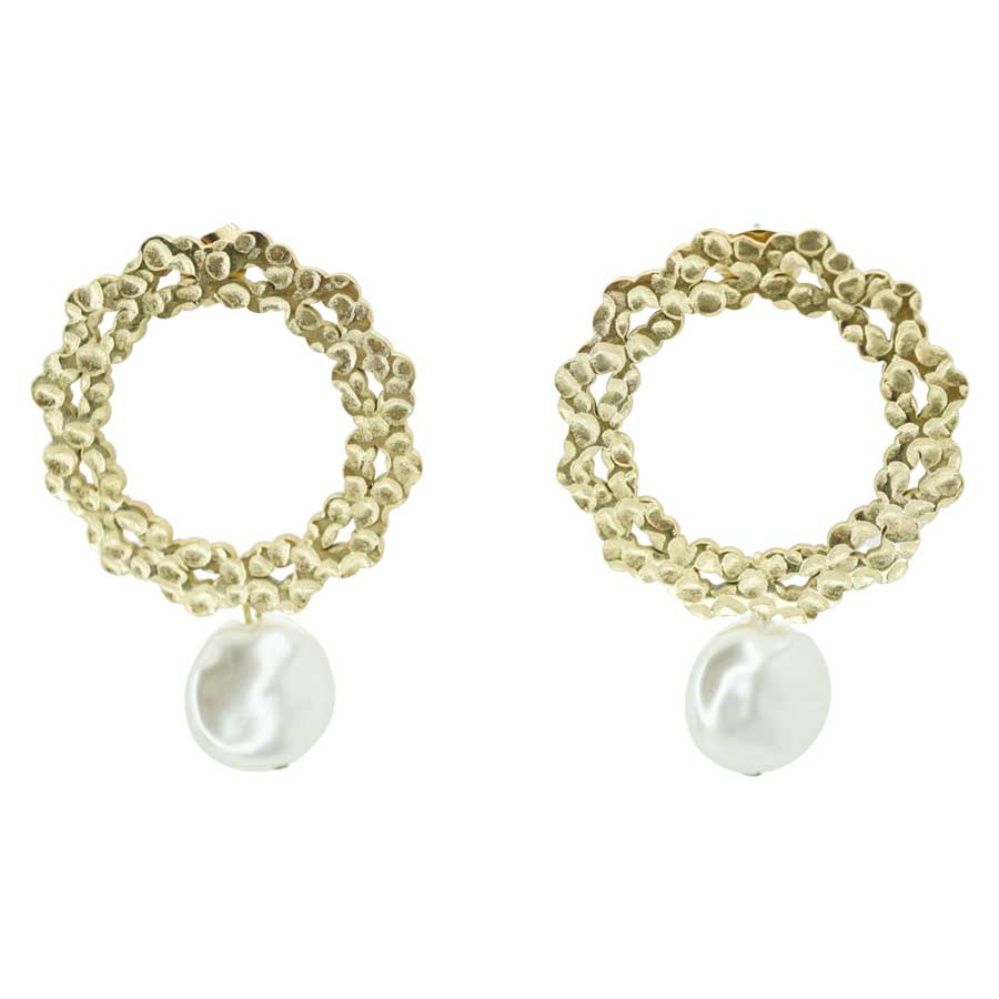 This is our different design with a pearl hanging. Made out of Stainless Steel and plating 14-Karat Gold.