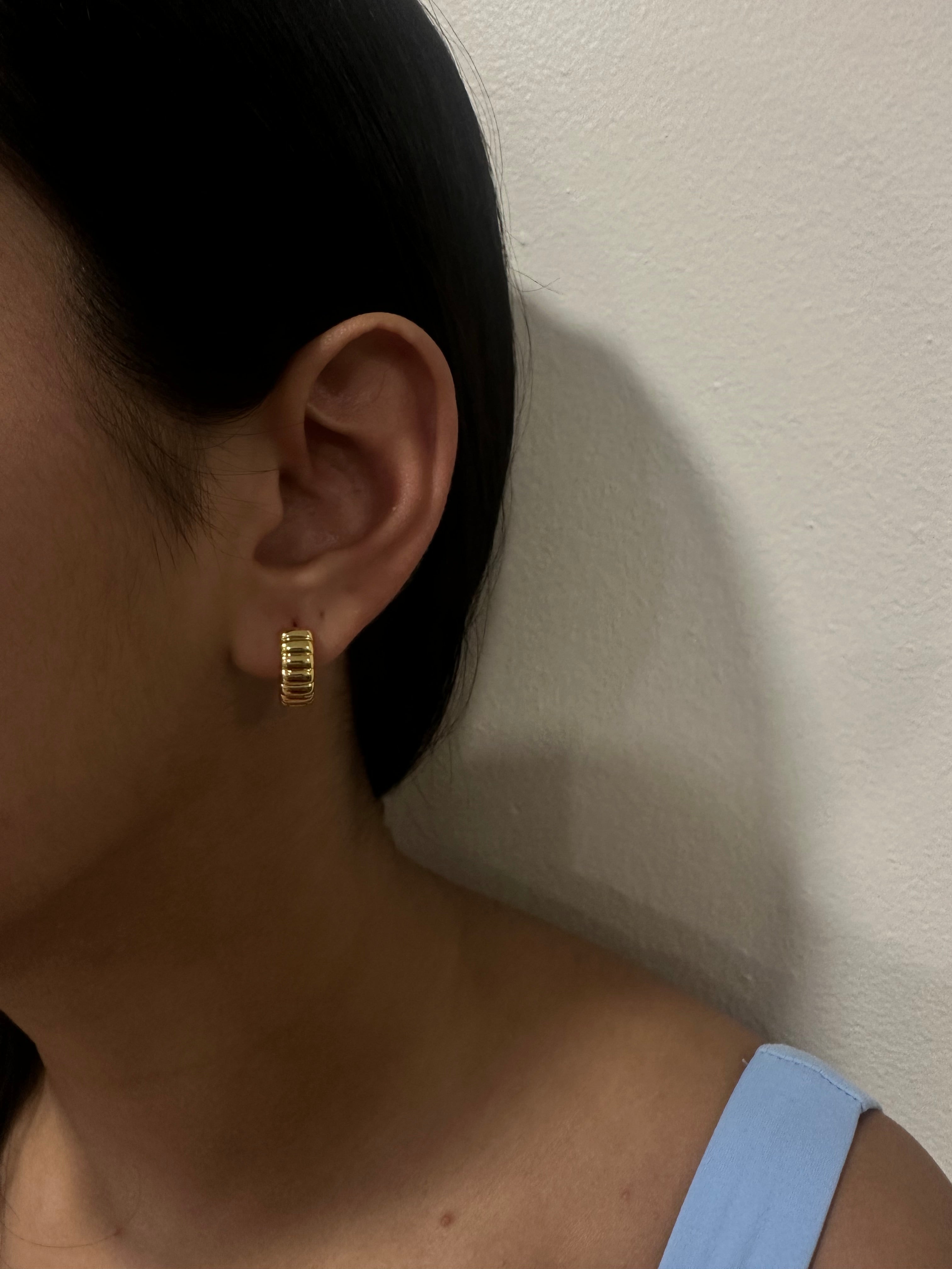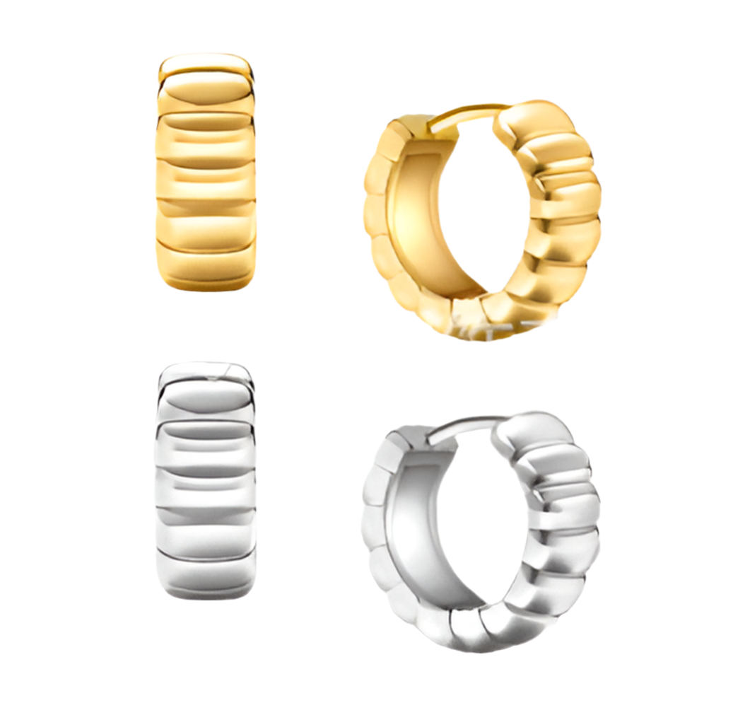 Introducing our Stripe Small Huggies - expertly crafted with high-quality Stainless Steel and 14K Gold Plating. These delicate huggies offer a timeless style that will elevate any ensemble. Enjoy the benefits of durability and elegance with each wear.
