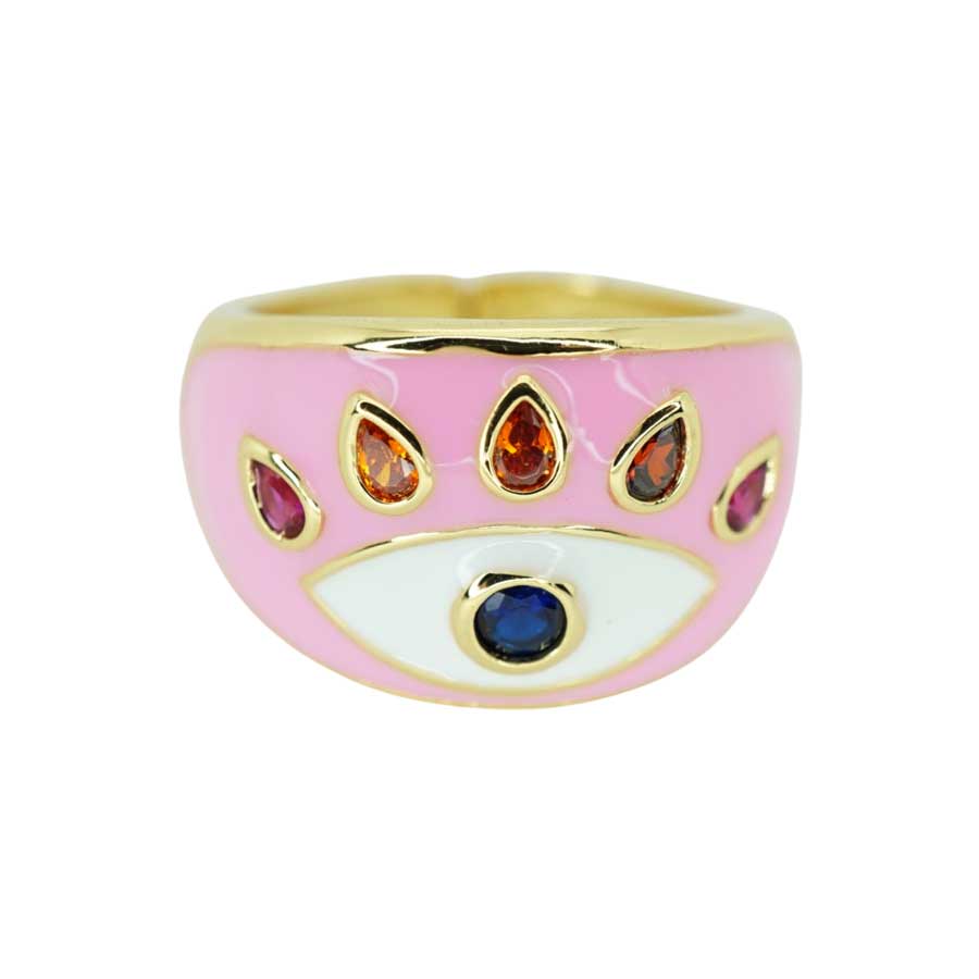Introducing the CZ Modern Evil Eye Ring, a stylish and trendy accessory that is perfect for those who want to add a touch of elegance to their outfit. Made of durable and corrosion-resistant Brass, this ring is designed to last for a long time. The ring is plated with Gold 14K, which adds a luxurious and elegant look to the ring.