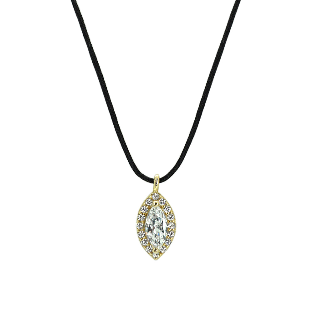 Style: CZ Tear Drop Black String Cord Necklace
