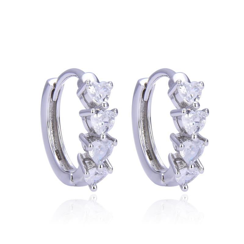 Style: CZ Four Hearts Hoops Earrings