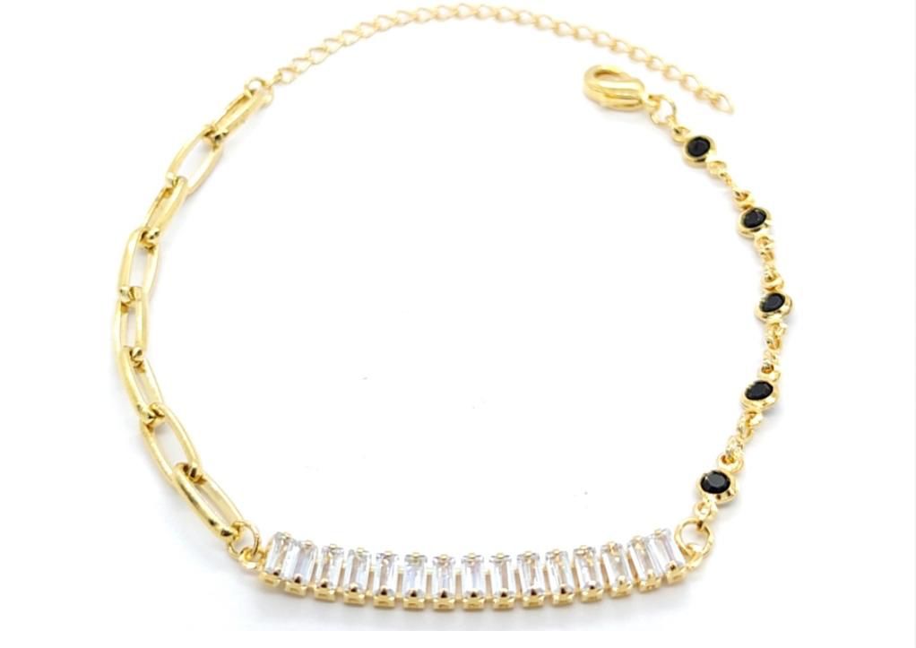Decorated with clear and black cubic zirconia.