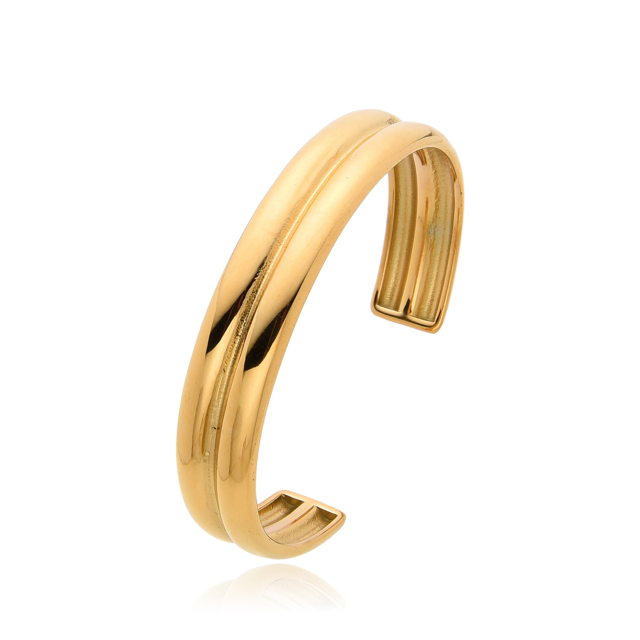 Our Wyatt Cuff Bracelet features a simple gold design, as shown. It's a