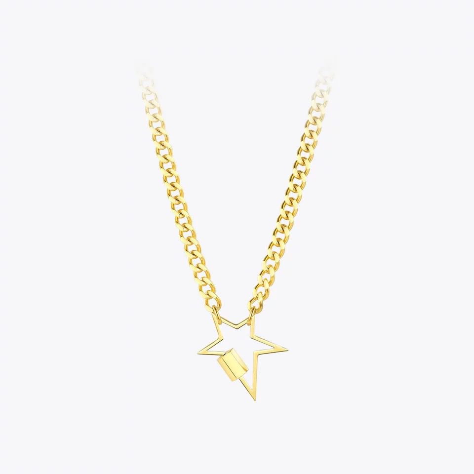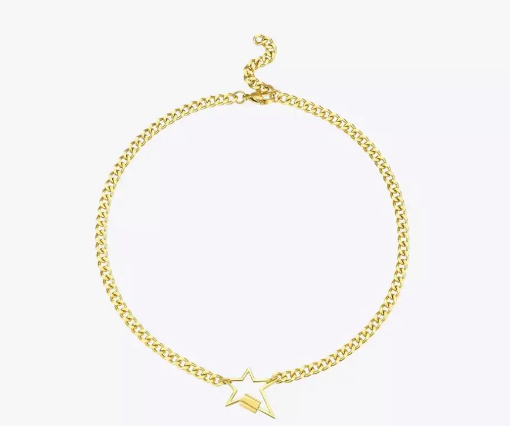 This is our rockstar and beautiful Kinsley made out of Stainless Steel with 14-Karat Gold plating.