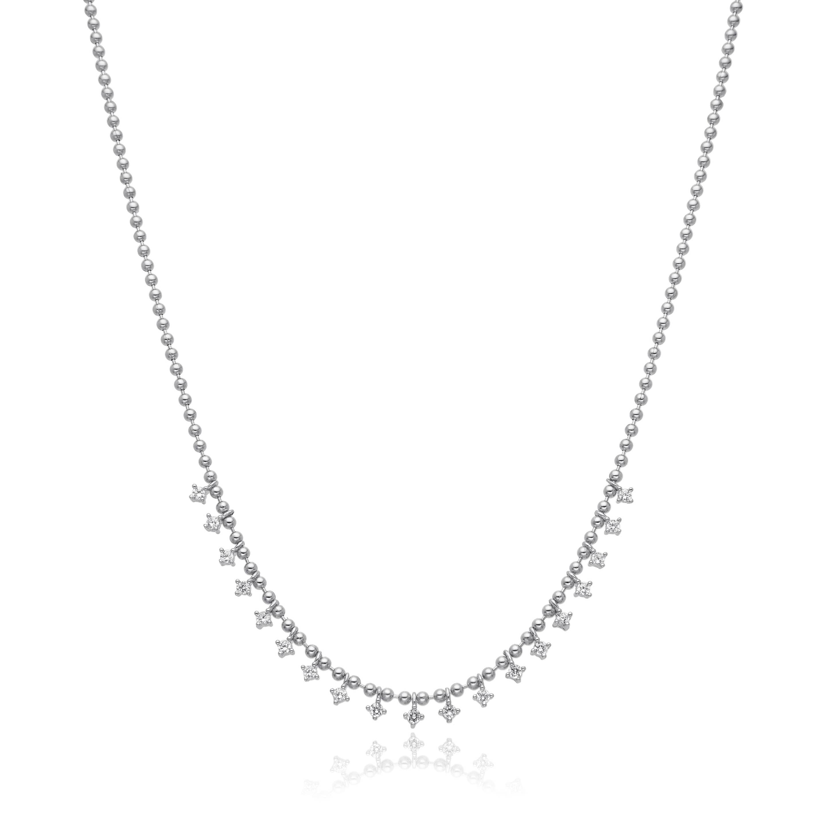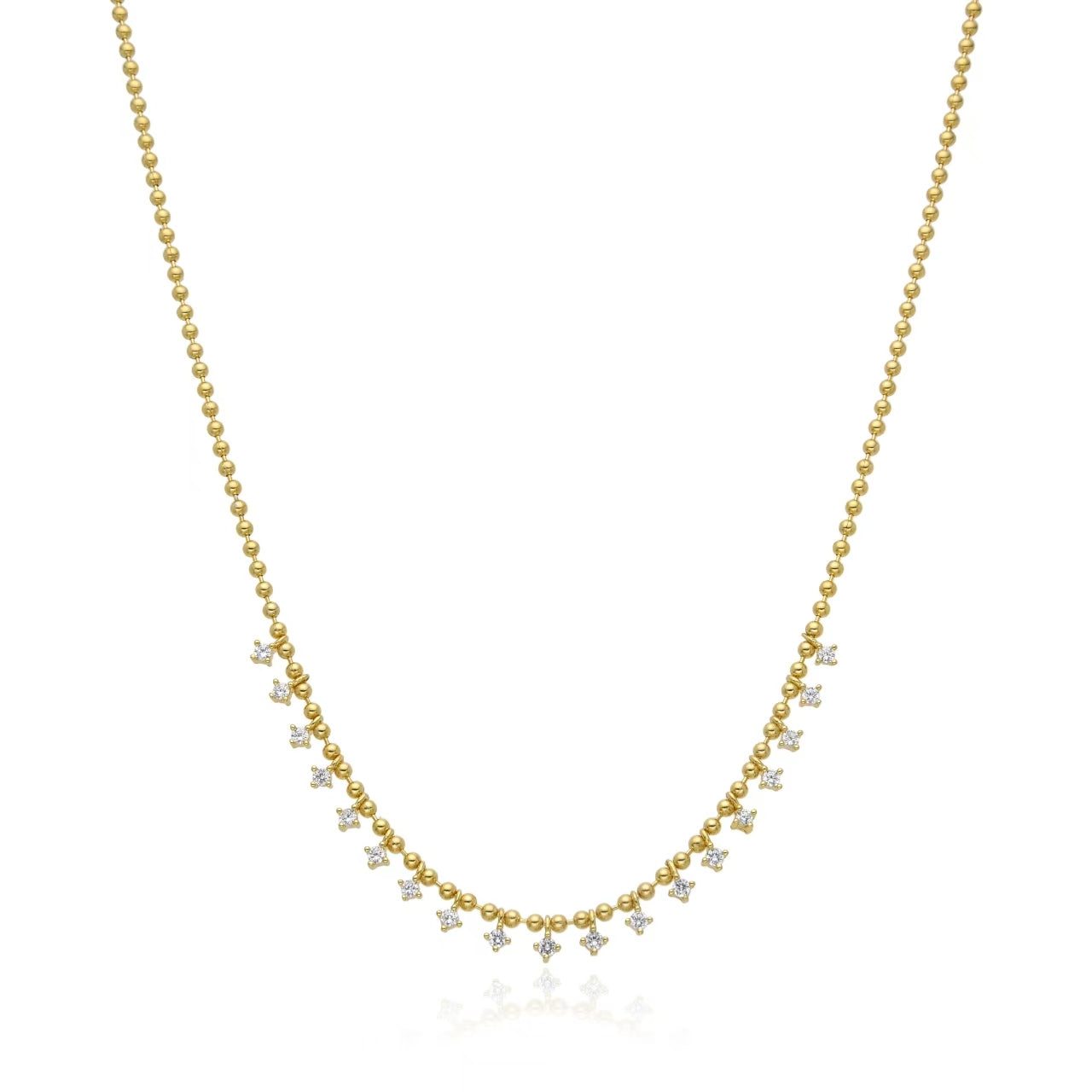 Crafted with precision and elegance, the Lauren Beaded Cz Necklace is a true testament to luxury. Made of Sterling Silver 925 with Gold plated 14K, this stunning necklace boasts a timeless design with sparkling cubic zirconia stones. Elevate any outfit with this sophisticated accessory. Measurements 15” plus 2” extension.