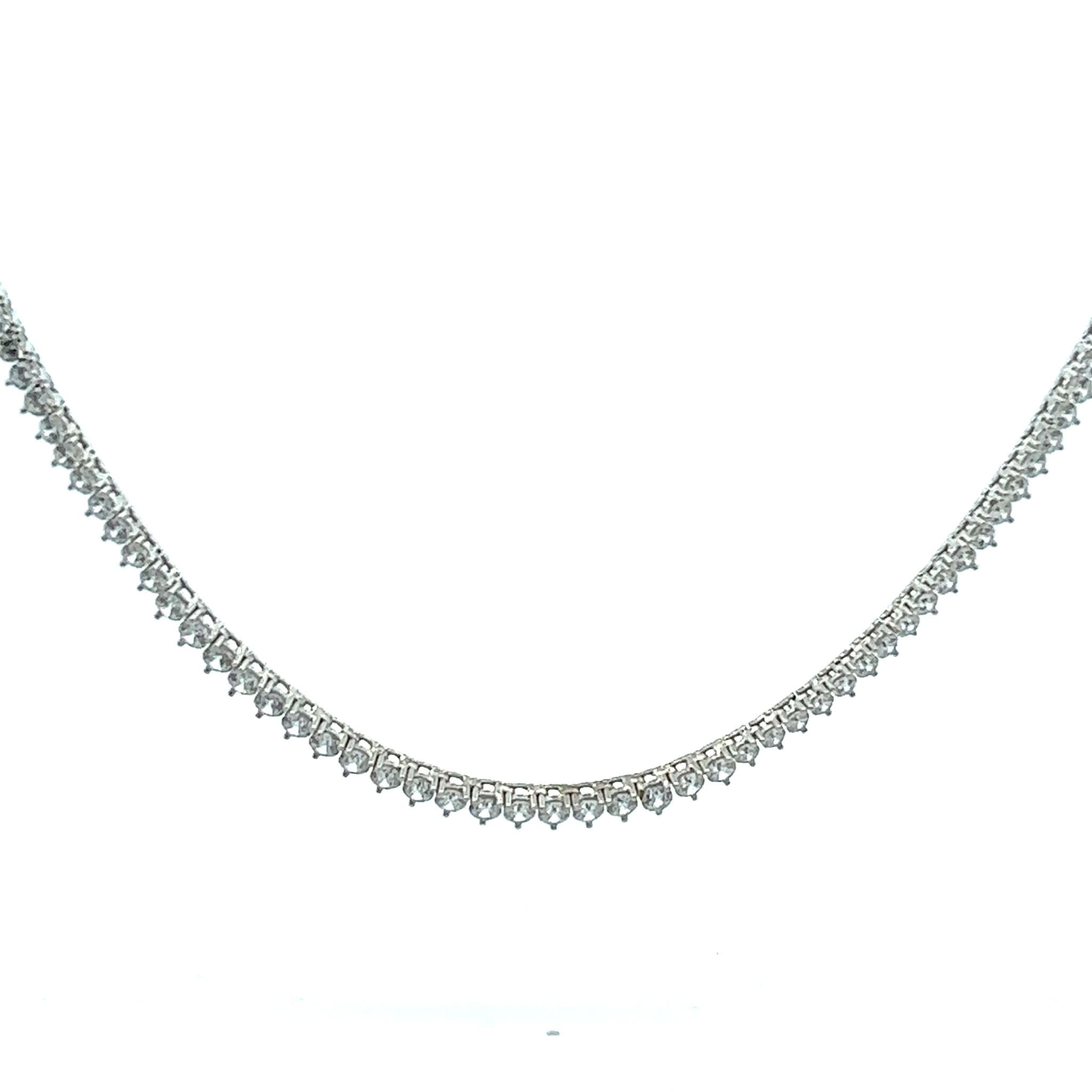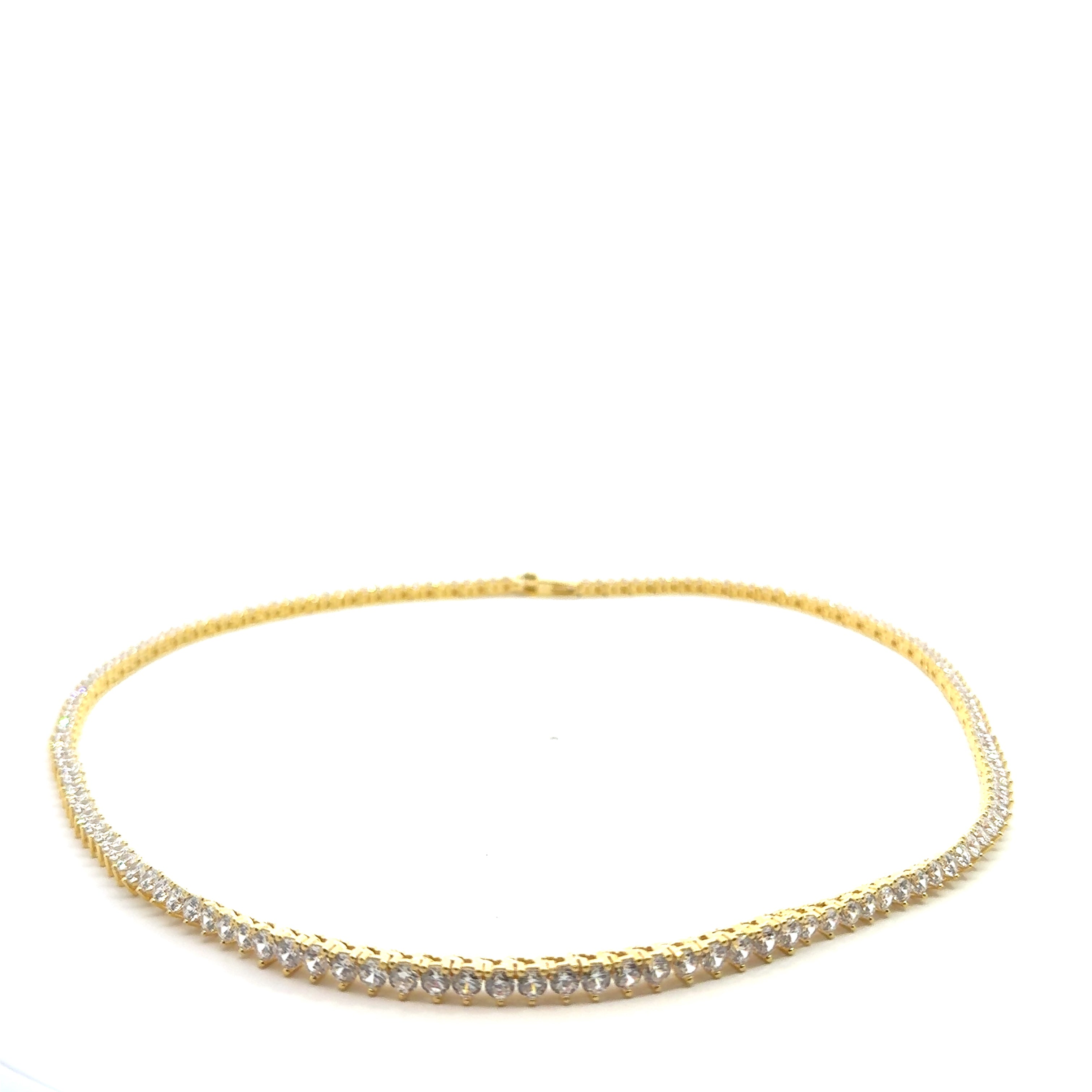The Princess tennis necklace features clear zirconia, a material that is known for its brilliance and sparkle. This adds a touch of elegance and sophistication to the necklace, making it perfect for special occasions or everyday wear.