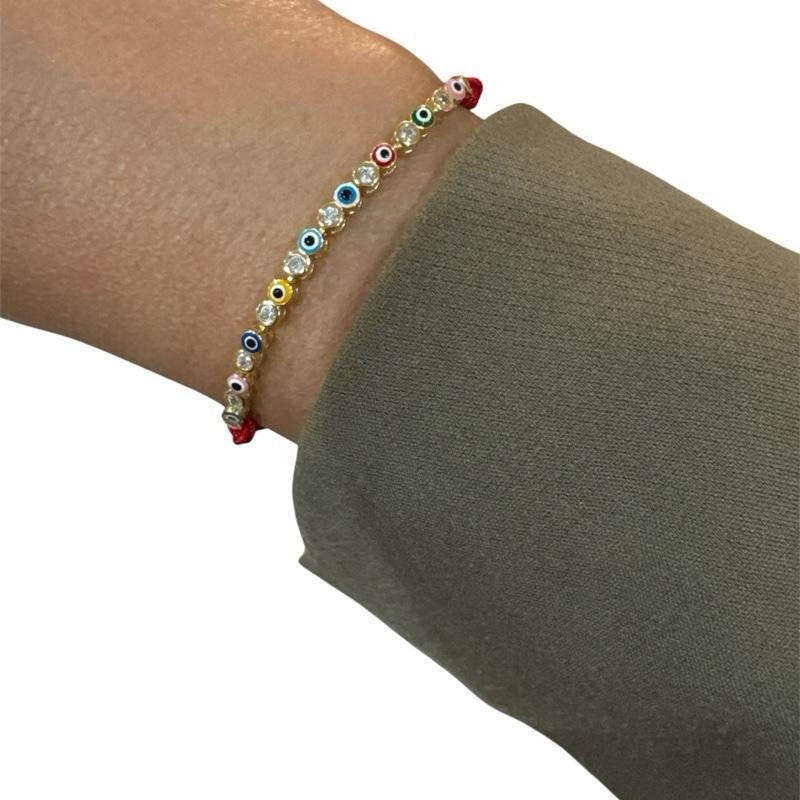 Red String CZ and Eye Bracelet - Colorful Bead Design Jewelry Accessory
