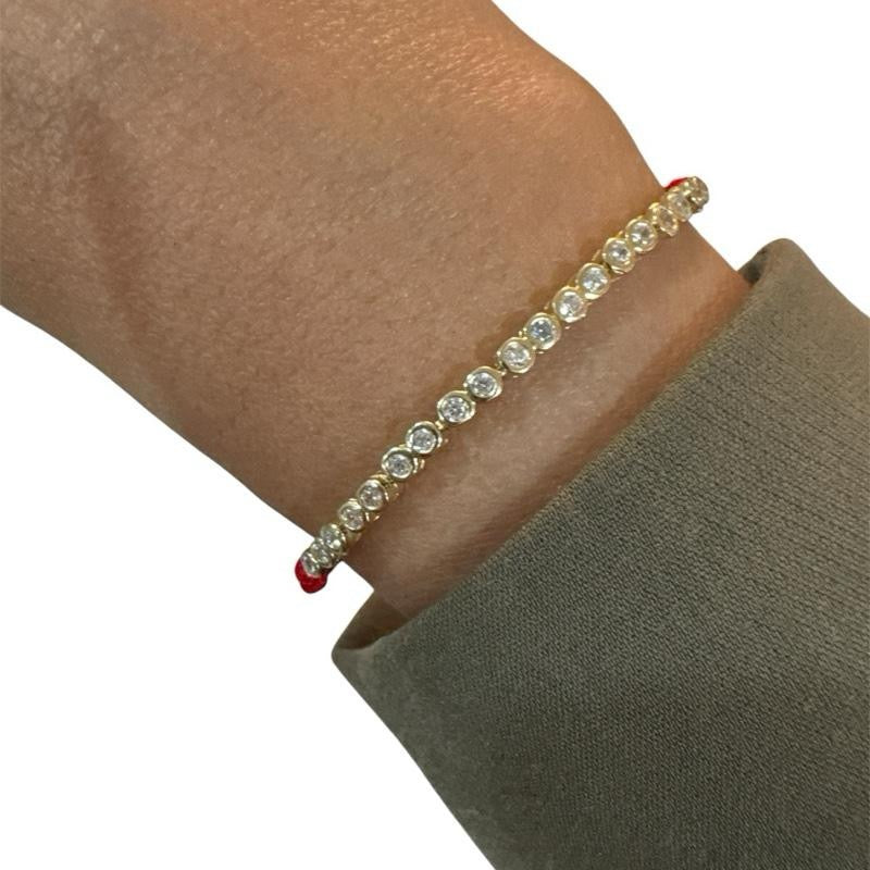 Our bracelet features a stunning Red String CZ and Eye design. It's crafted