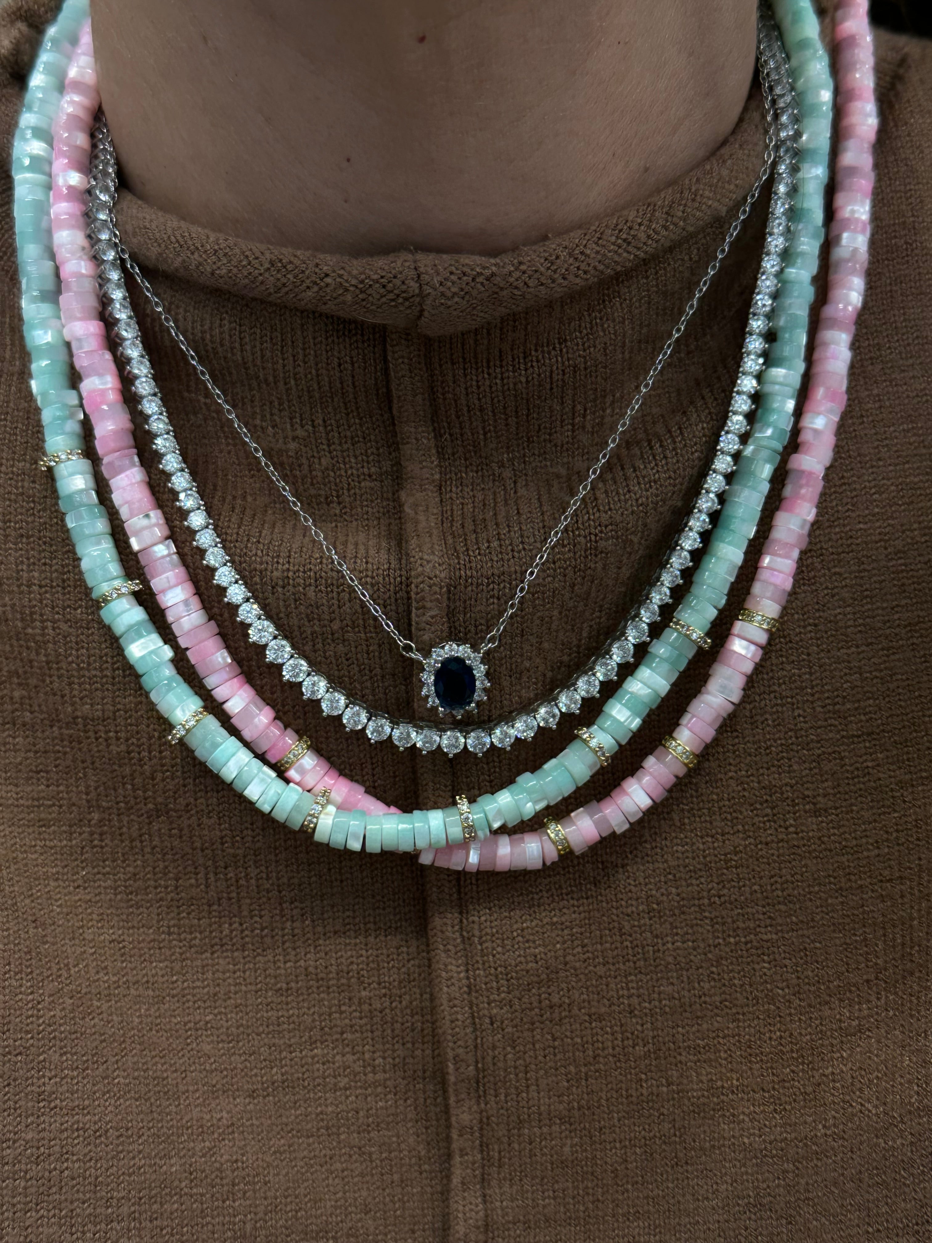 Our Siesta Necklace is intricately designed with pink and aqua Shell, making it the perfect accessory for Summer. With precise measurements of 15 inches and a 2-inch extension, it is sure to elevate your look.