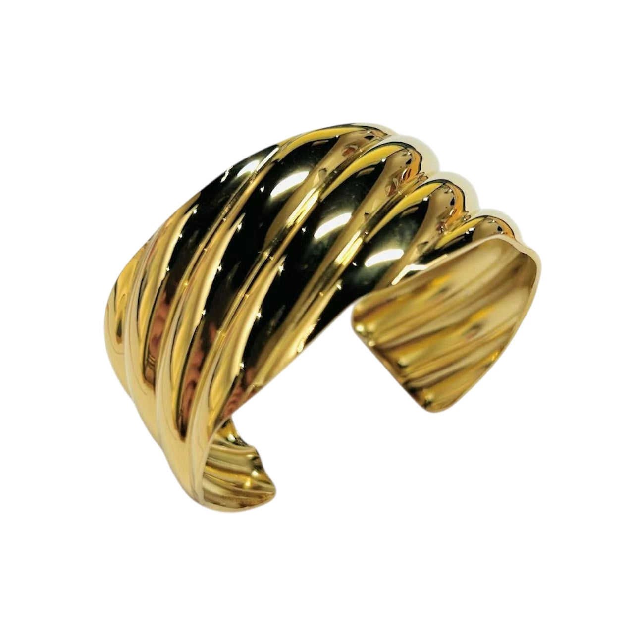 Elevate your style with our Thick Wave Open Bracelet. Crafted from Stainless