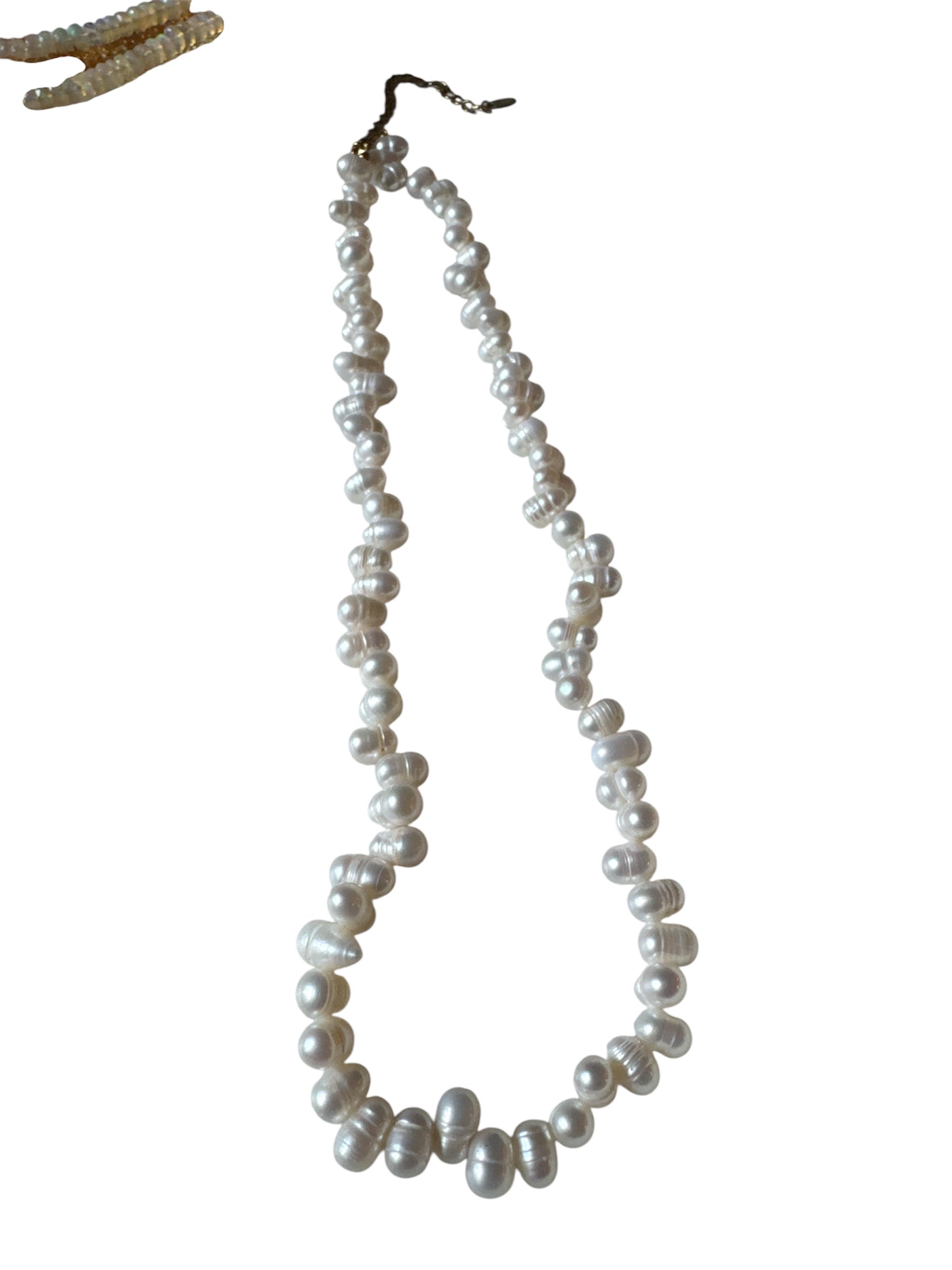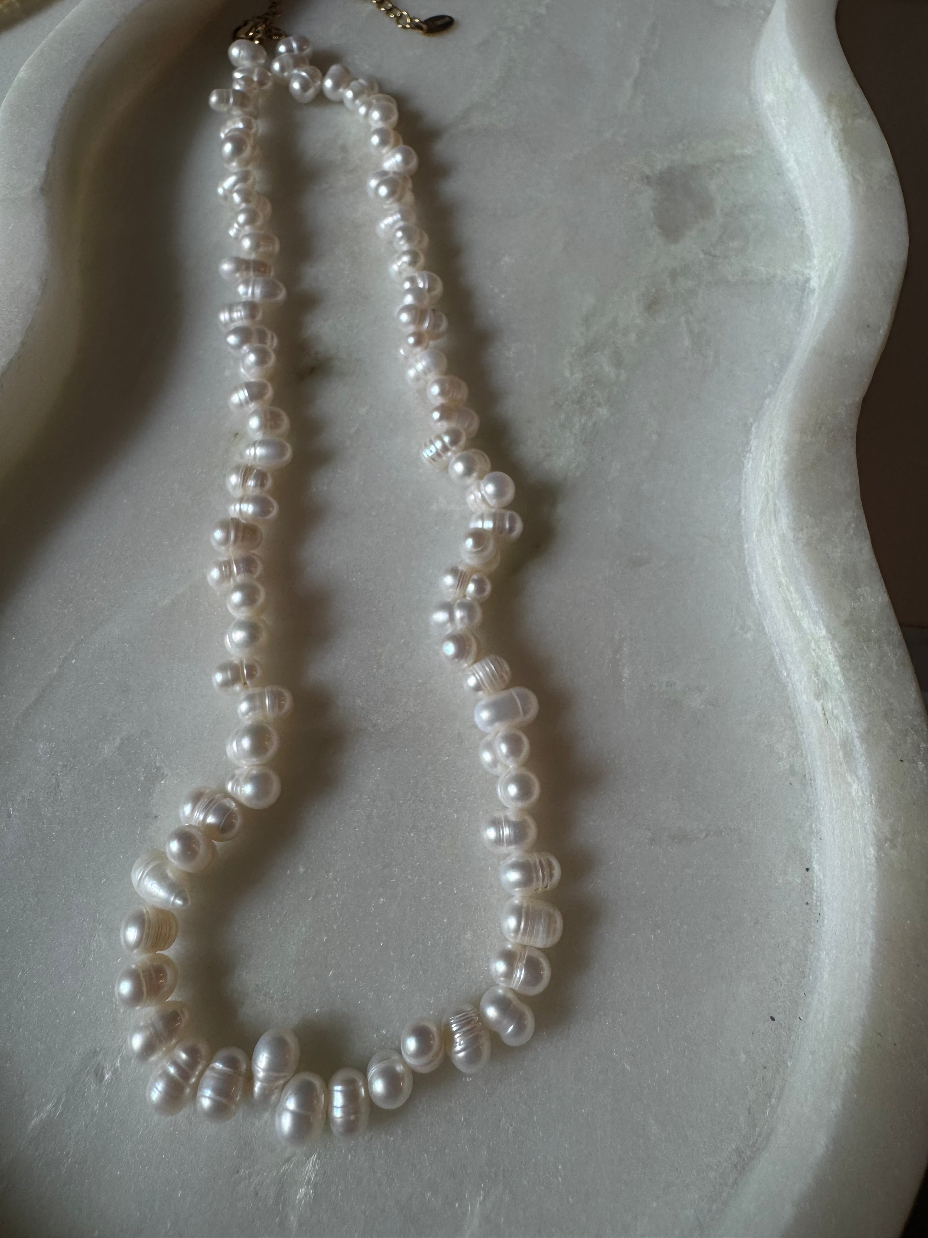 ✨ Discover the elegance of our Wavy Pearl Necklace. This necklace features a