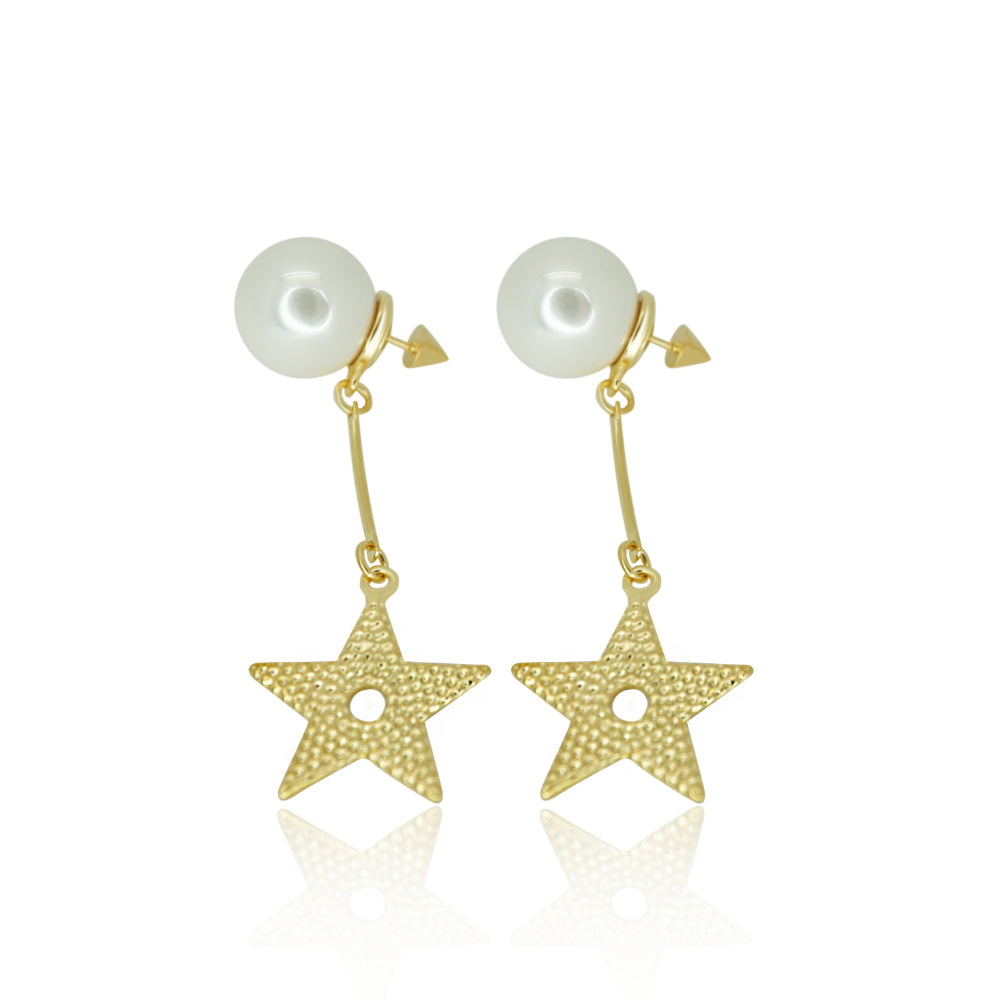 These stunning earrings are perfect for any occasion. With a beautiful pearl on the top and a star dangling from each earring, will compliment any look.
