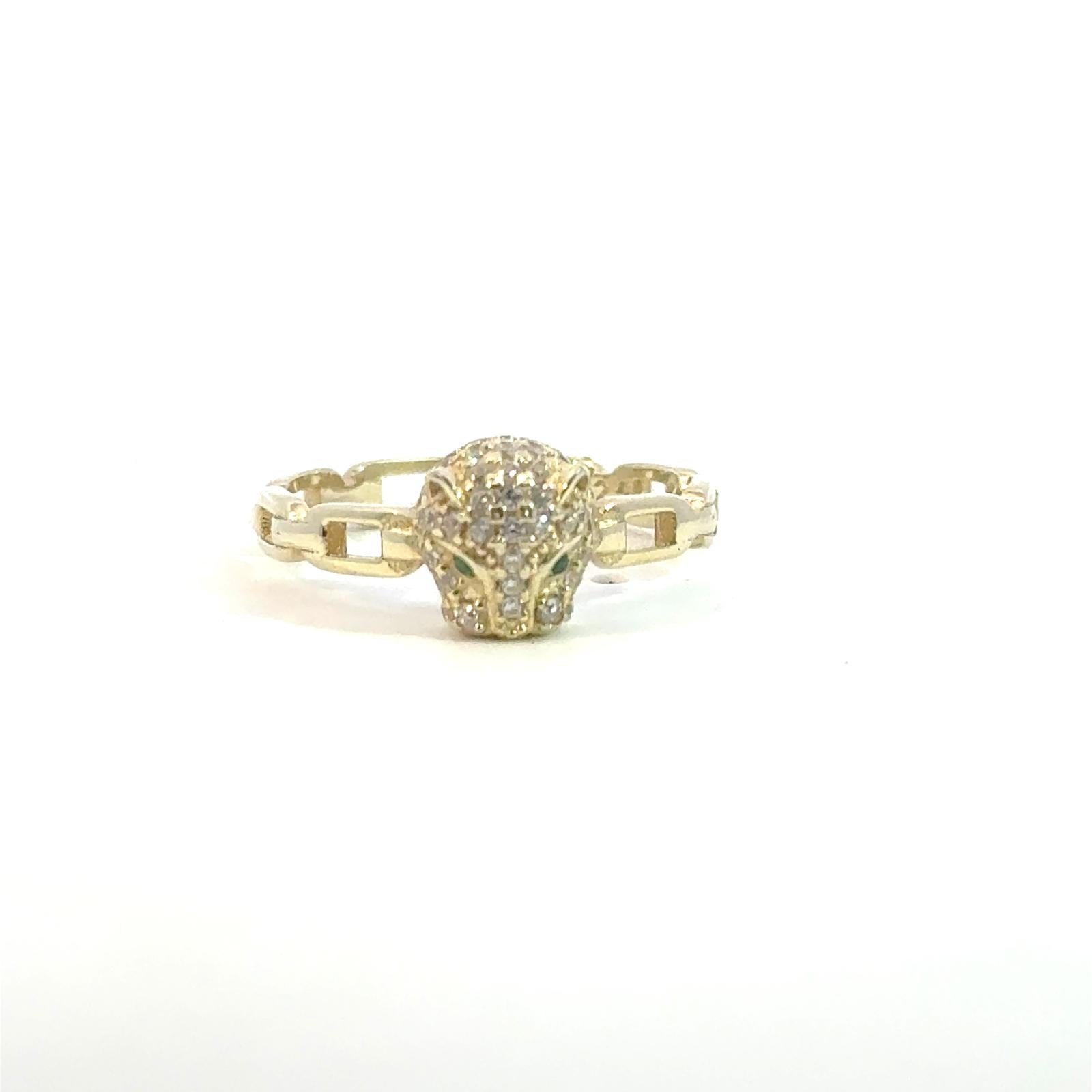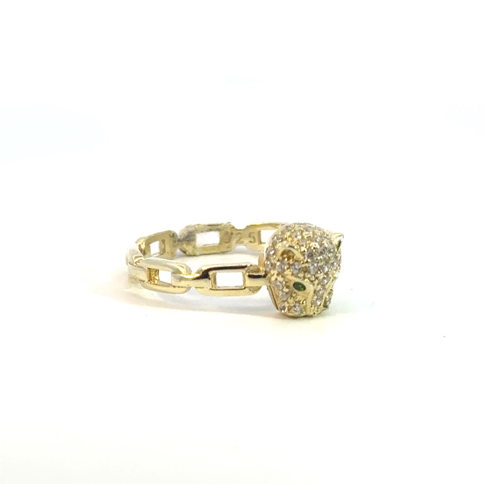 Introducing the Panther Green Eye Link Ring, a stunning piece of jewelry that is sure to catch the eye. Made of Sterling Silver 925, this ring is durable and long-lasting, making it resistant to tarnishing and corrosion. The Gold plating 14K adds a layer of protection to the ring, preventing it from tarnishing or losing its shine over time.