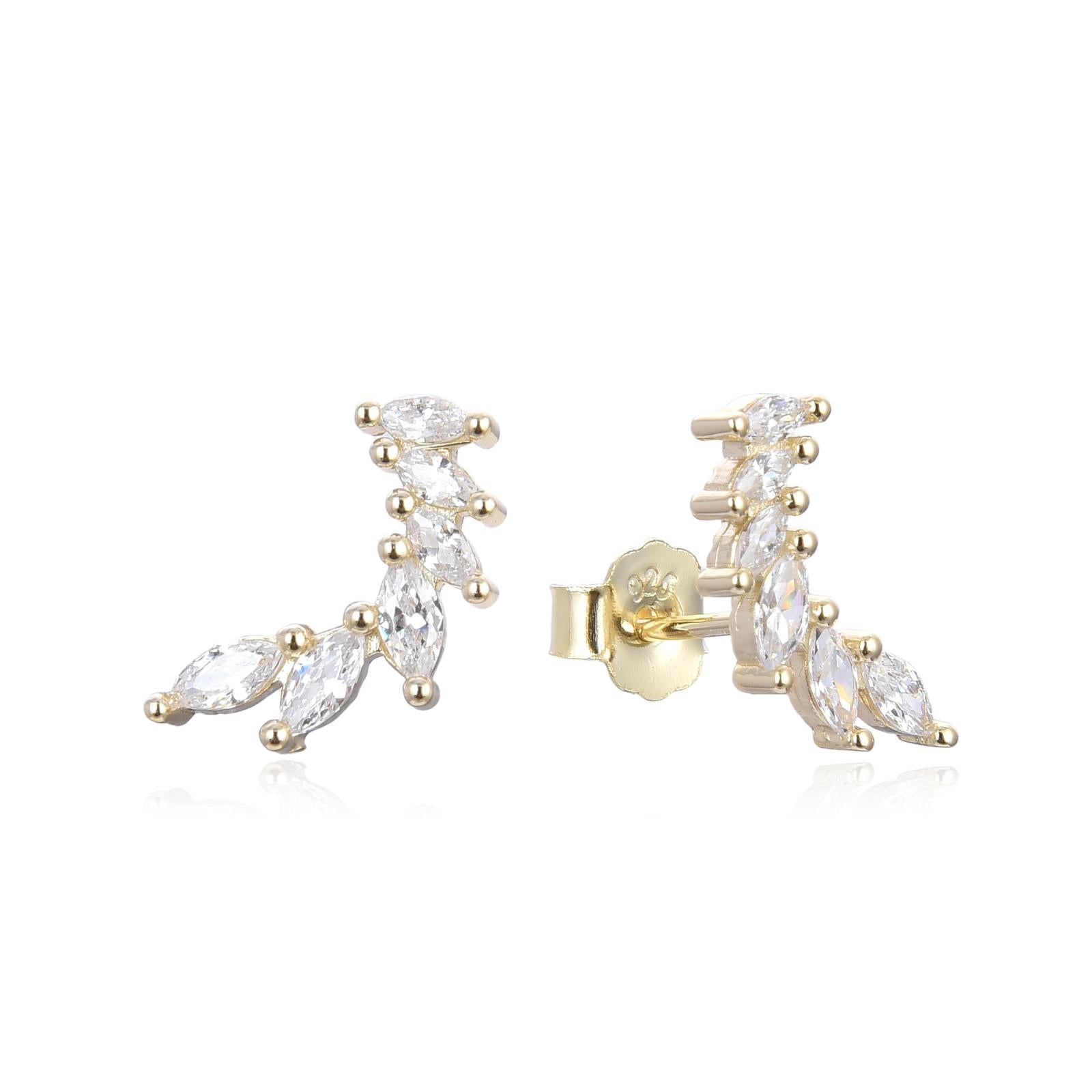 Charlotte earrings are made with premium sterling silver .925, plated with 14k Gold and clear cubic zirconia stones. These stud earrings are available in gold and silver.