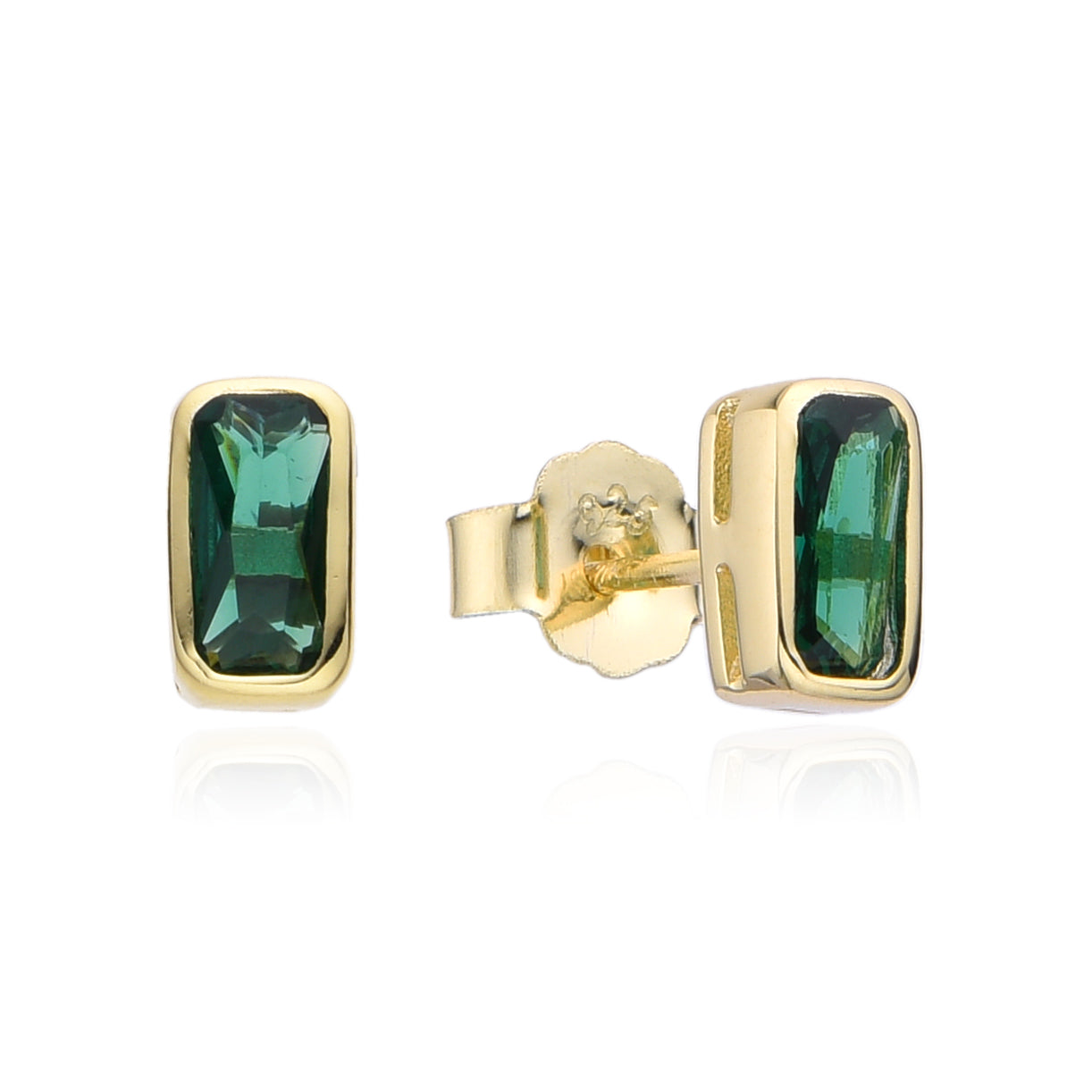Our Green Emerald cut stud is made in Sterling Silver 925, Gold plated 14K with Green Zirconia.