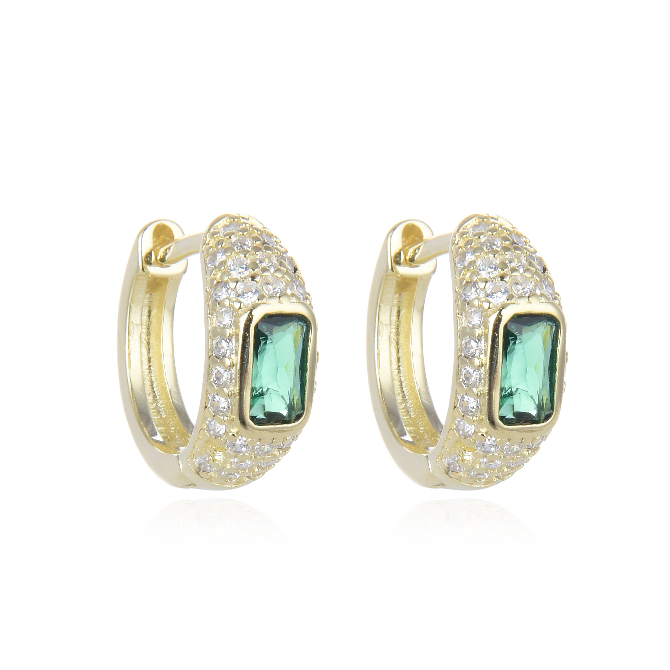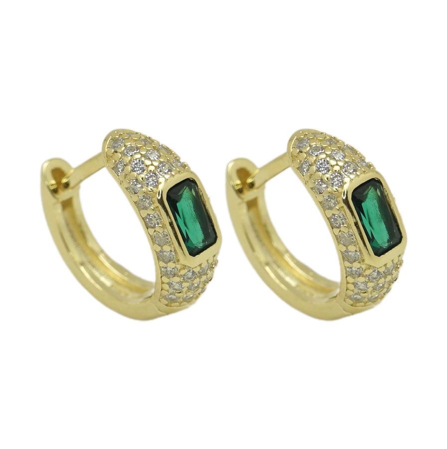 Covered with clear CZ and a big green CZ. Available in Gold and Silver.