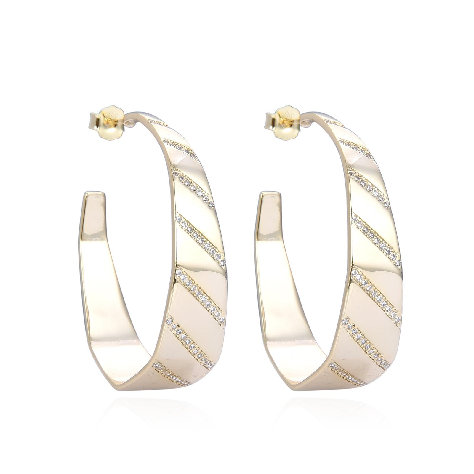 Marina’s CZ Hoop earrings are made out of sterling silver .925 and plated with 14-Karat Gold. They can be worn for a casual or formal event and will complement any outfit.
