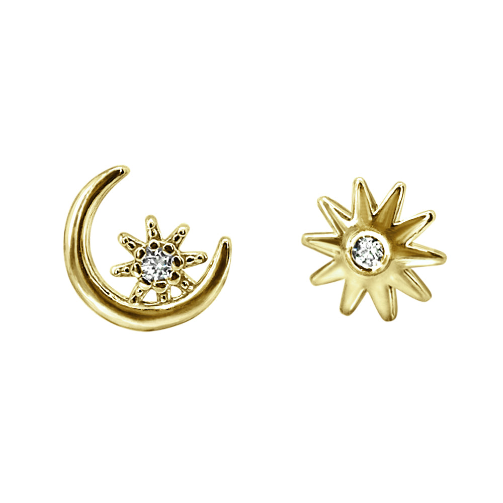 These are our lovely Moon and Sun made out of Sterling Silver .925 with 14-karat gold plating.