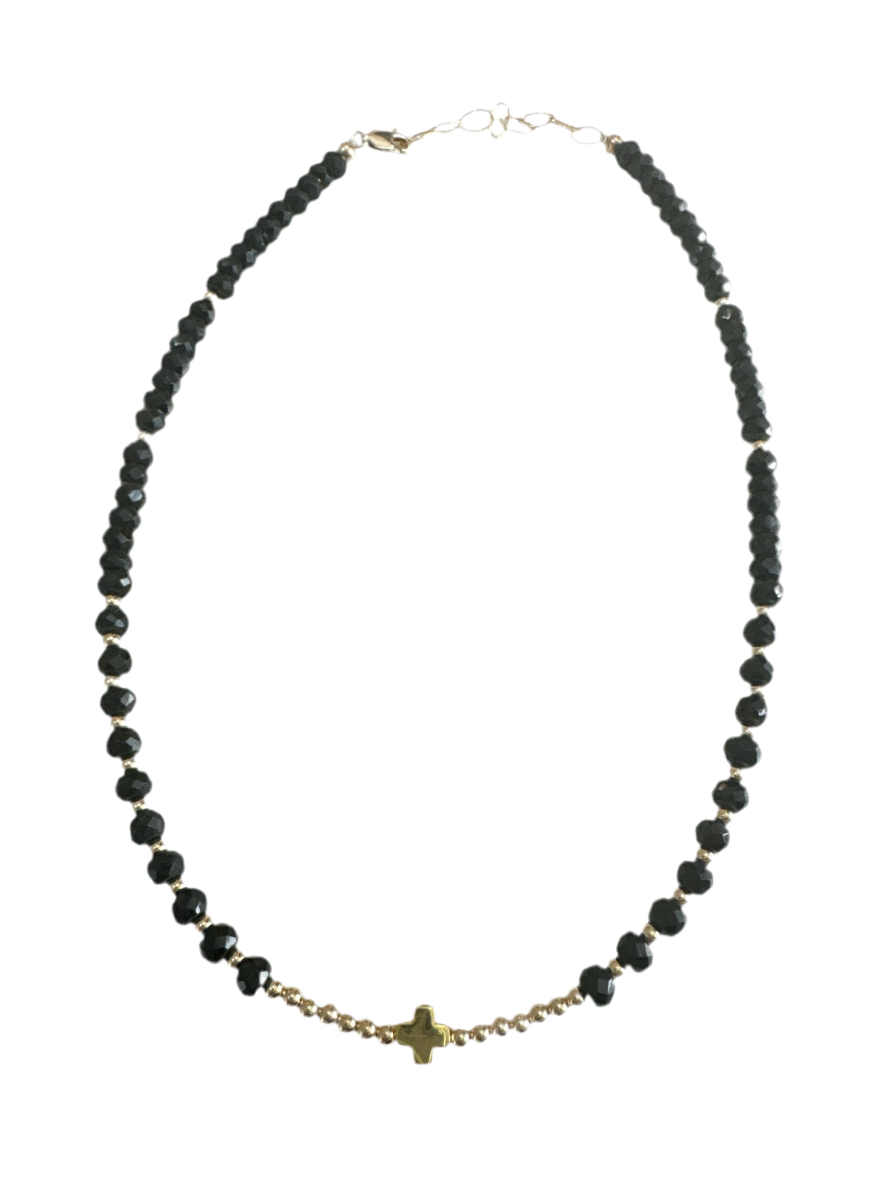 Our Black spinel Necklaces is made of Black spinel beads, Goldfilled beads, lock and charms is Brass Gold plated 14K