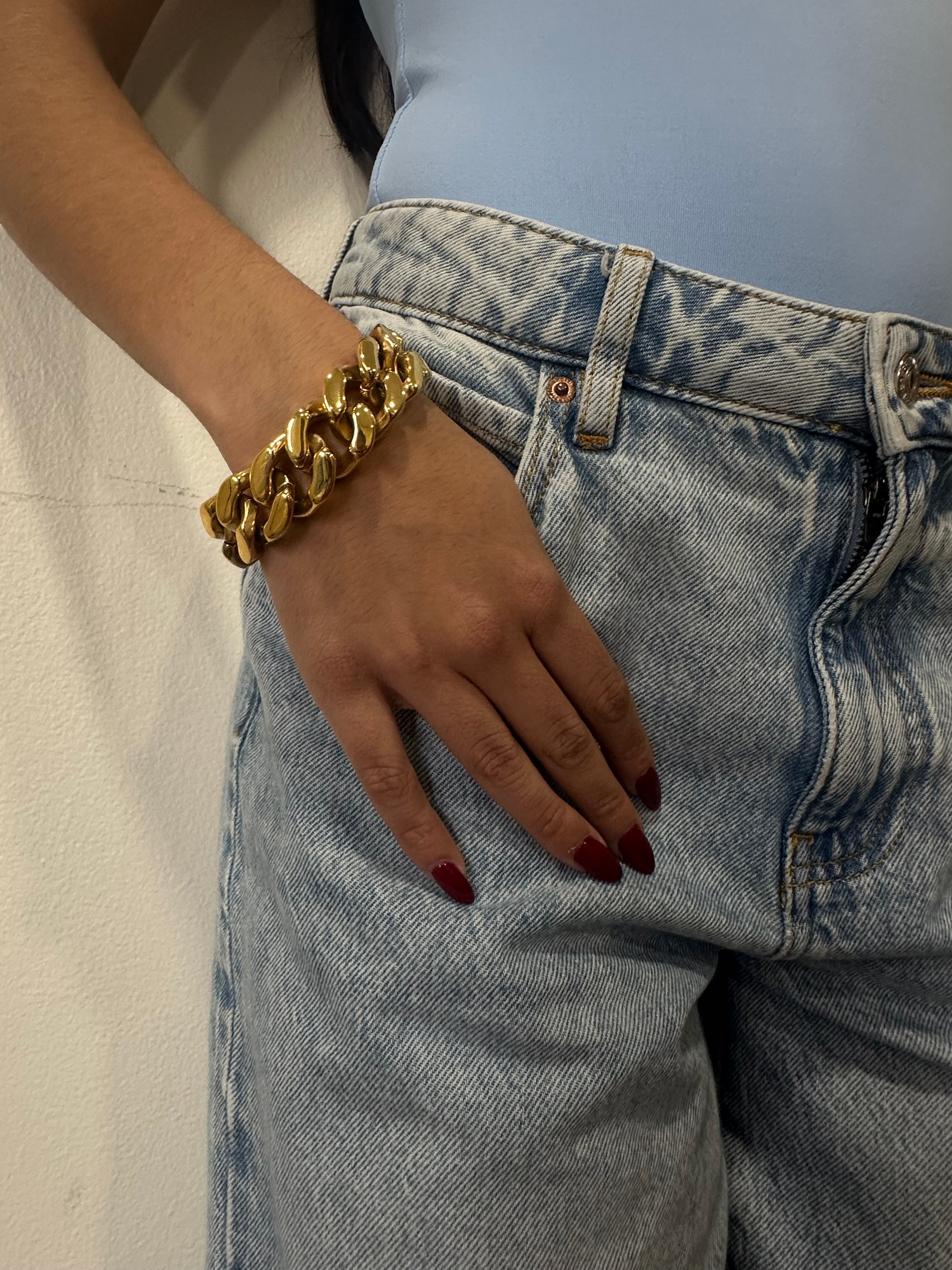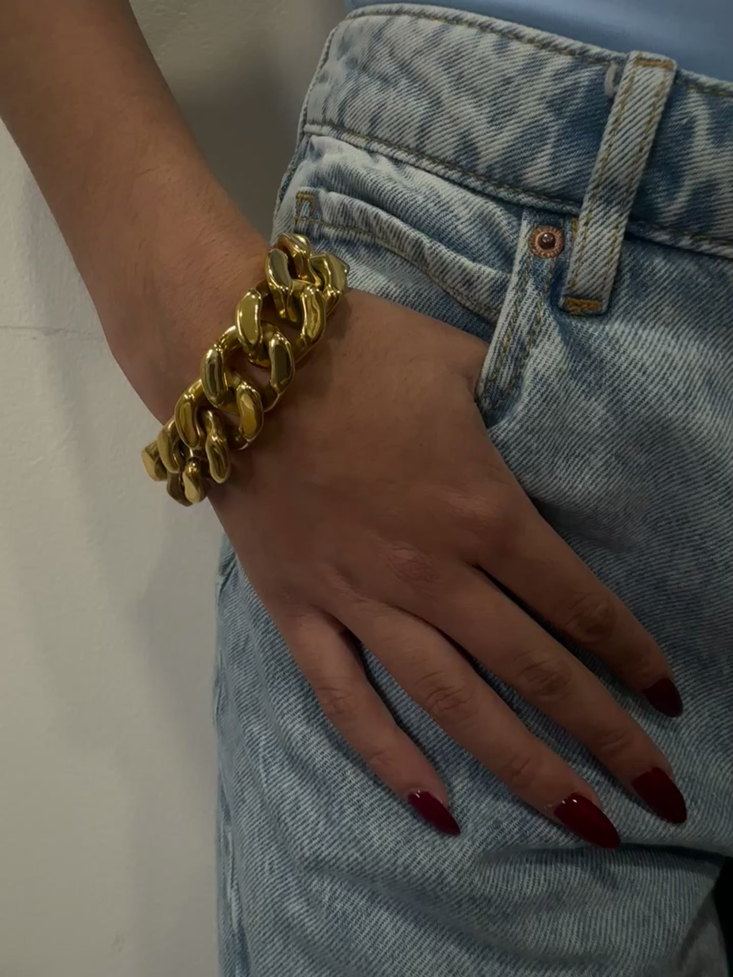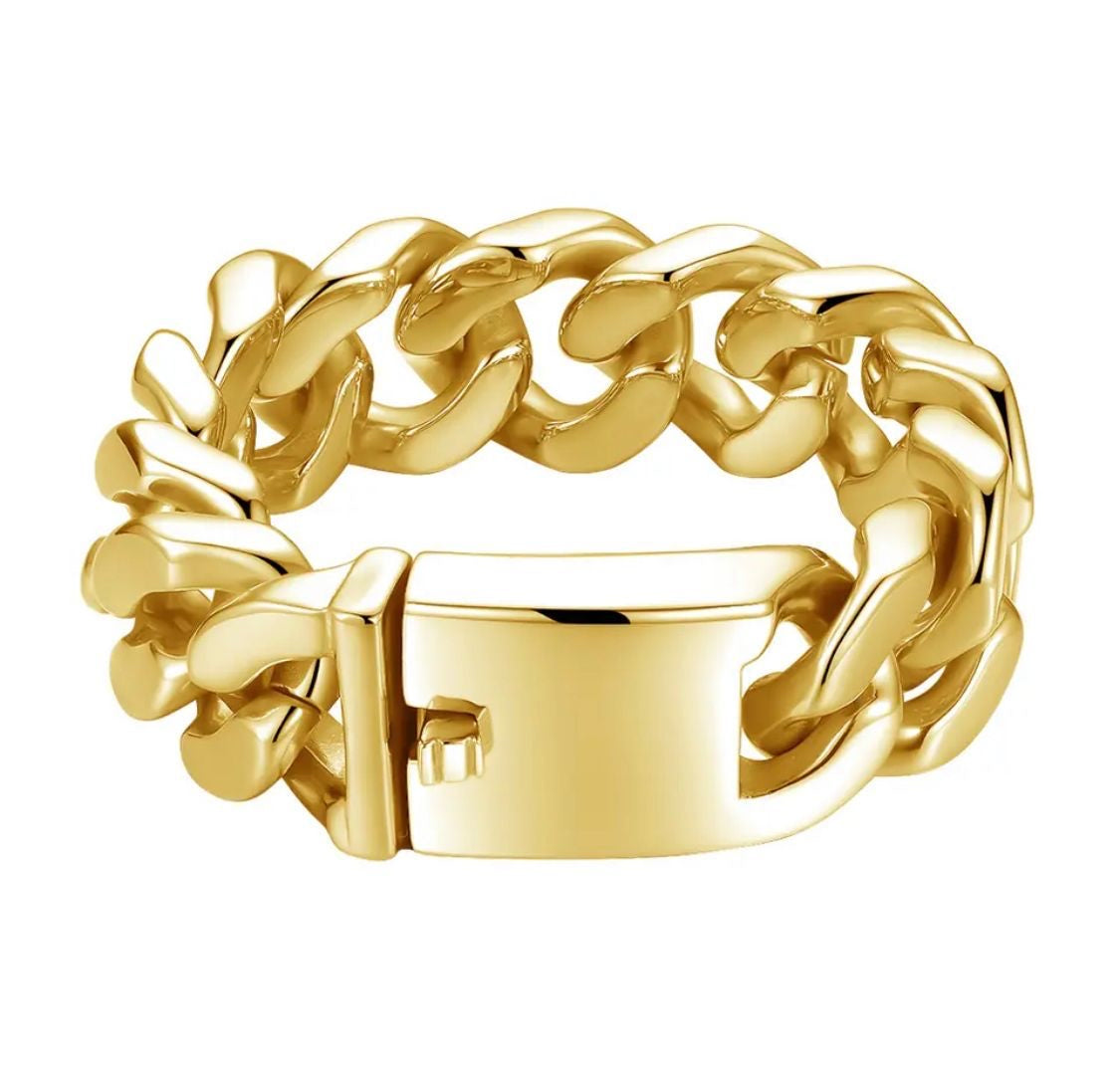 This Thick Cuban link bracelet is expertly crafted with Stainless steel and 14k Gold plating for a durable and luxurious design.