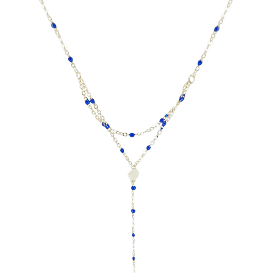 Karli Lariat Necklace is a high-quality piece of jewelry made from premium stainless steel and 14-Karat gold plated. It's perfect for layering with other pieces or to wear alone. It is available in 2 colors: blue and black.