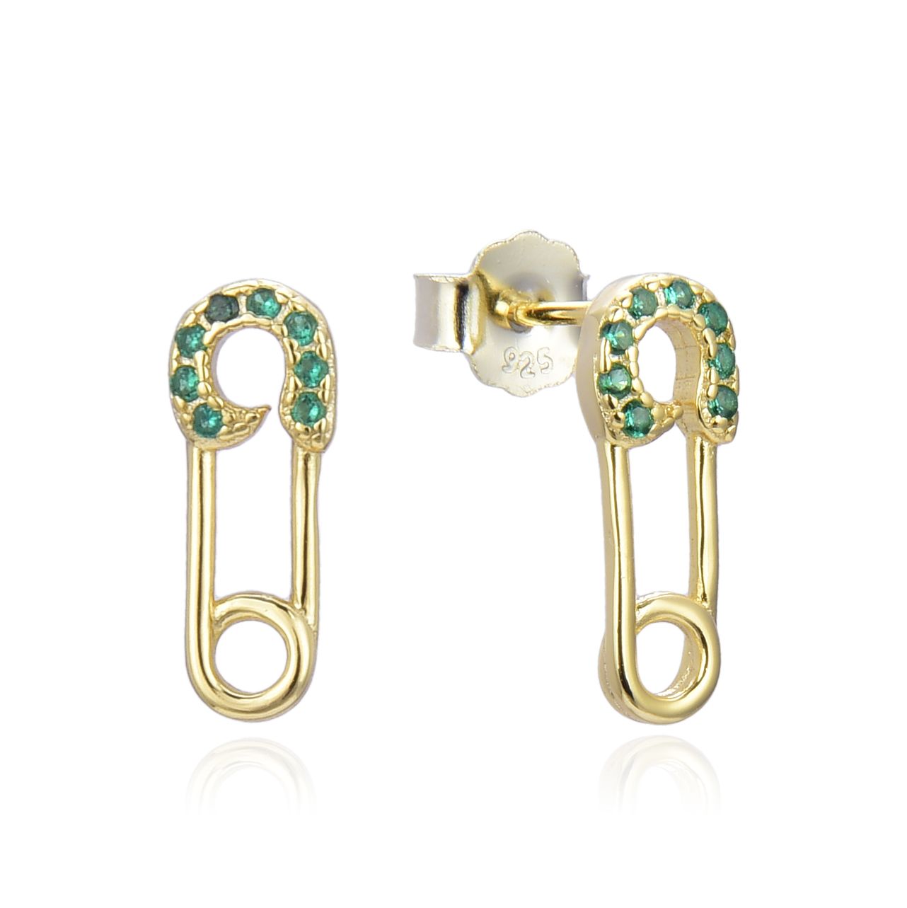 CZ Safety Pin Stud Earrings