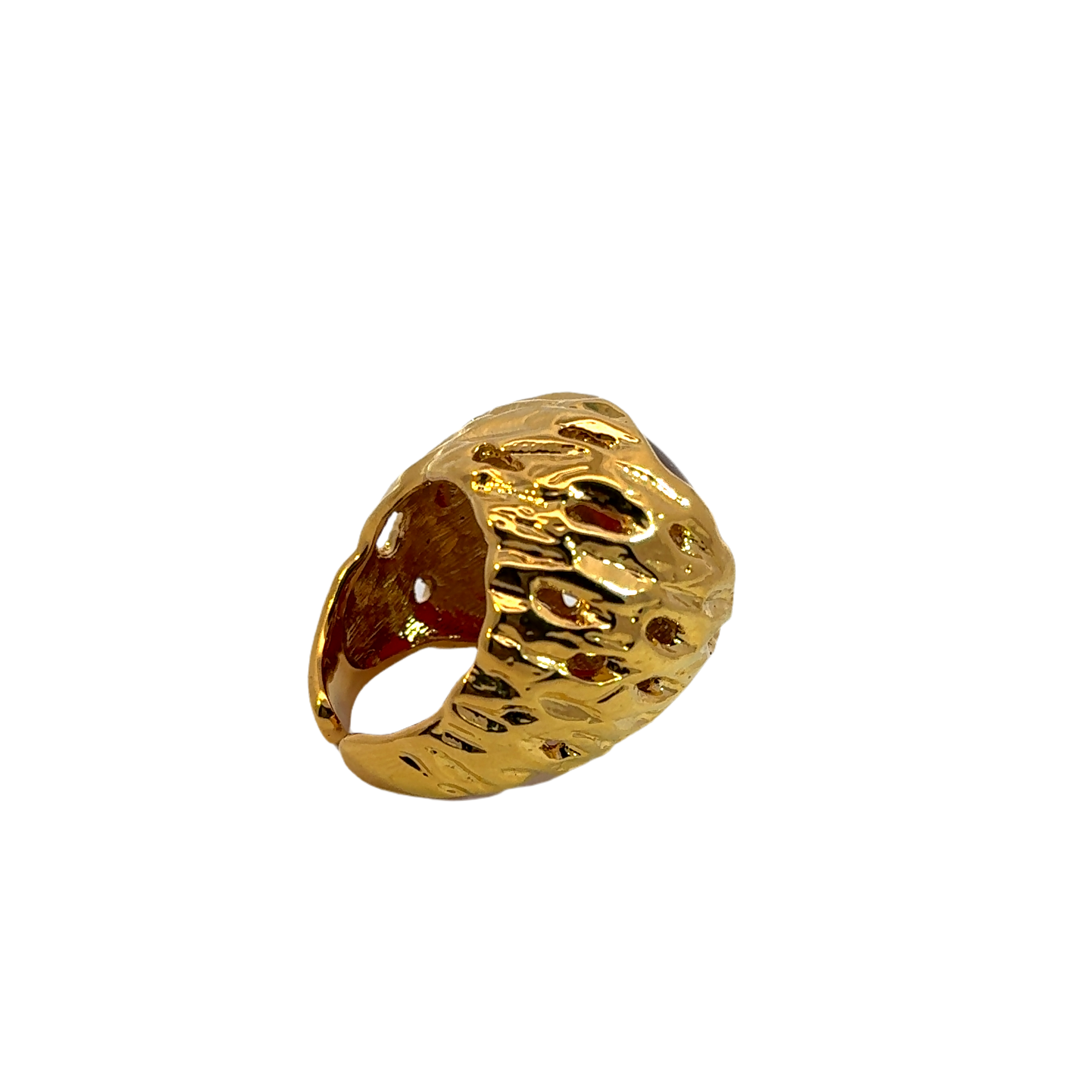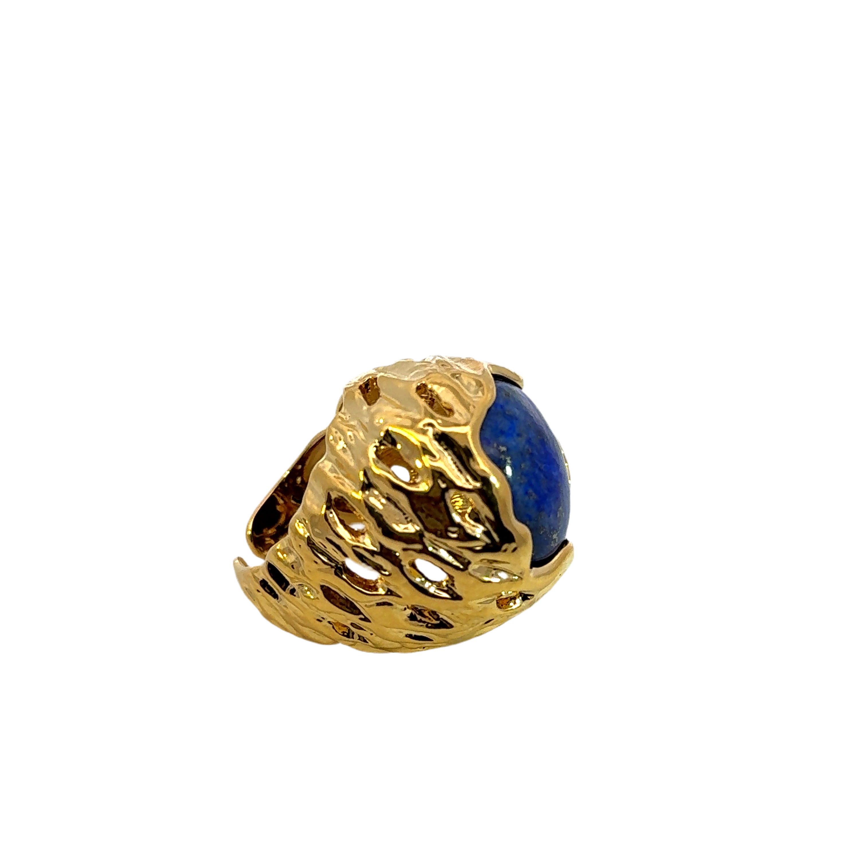 Introducing our Dome Stone Ring. Made with Brass and plated with 14K Gold, this ring will add a touch of elegance to any outfit. The beautiful Lapislazuli Stone adds a pop of color and uniqueness, making it a must-have accessory for any occasion. Elevate your style with the Dome Stone Ring.