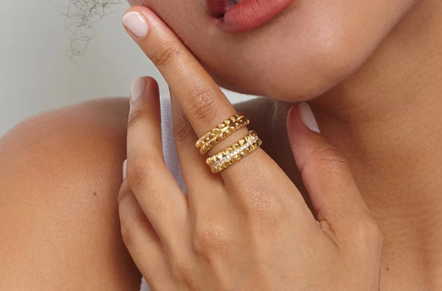 Whether you're dressing up for a special occasion or just want to add a touch of elegance to your everyday look, the Double Stud CZ Ring is the perfect choice. With its durable construction and elegant design, this ring is sure to become a staple in your jewelry collection.