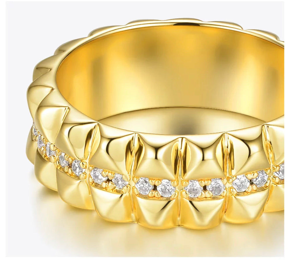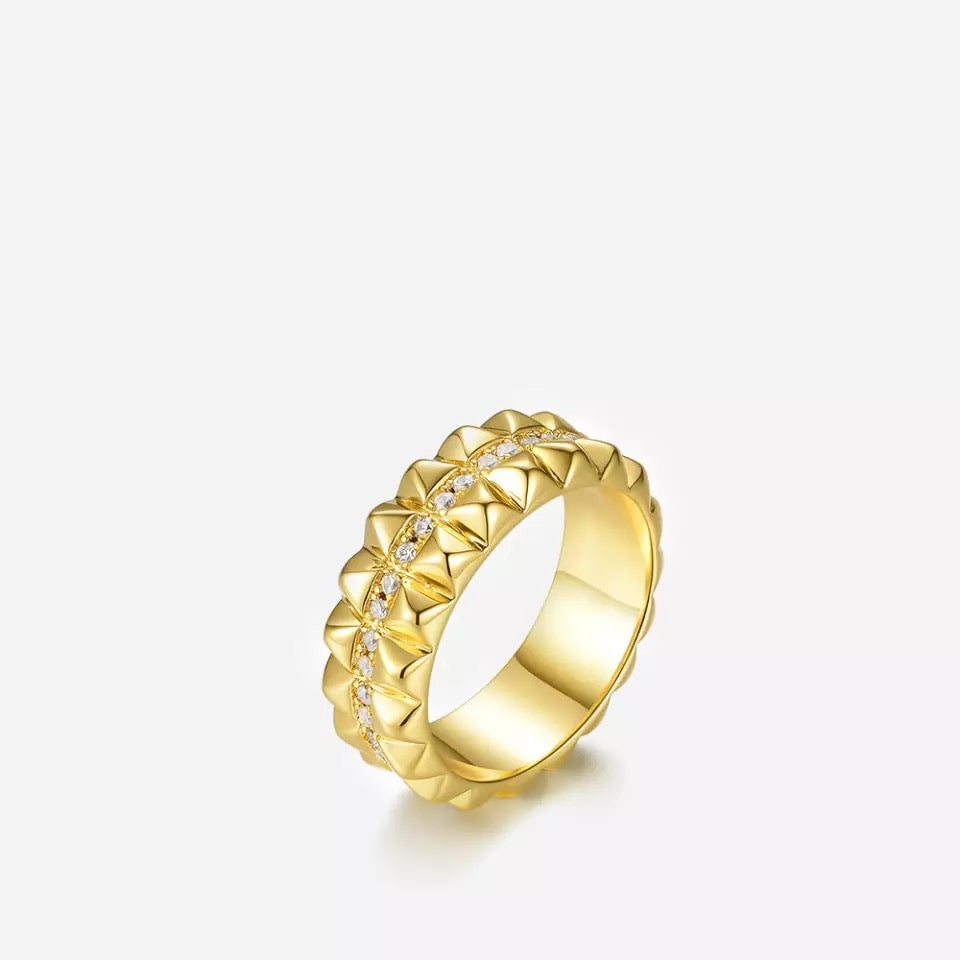 The Double Stud design of the ring is what sets it apart from other rings. It features two studs that are sure to catch the eye and make a statement. The CZ stones that adorn the ring are also inlaid in a Double Stud design, adding to the overall elegance and sophistication of the piece.