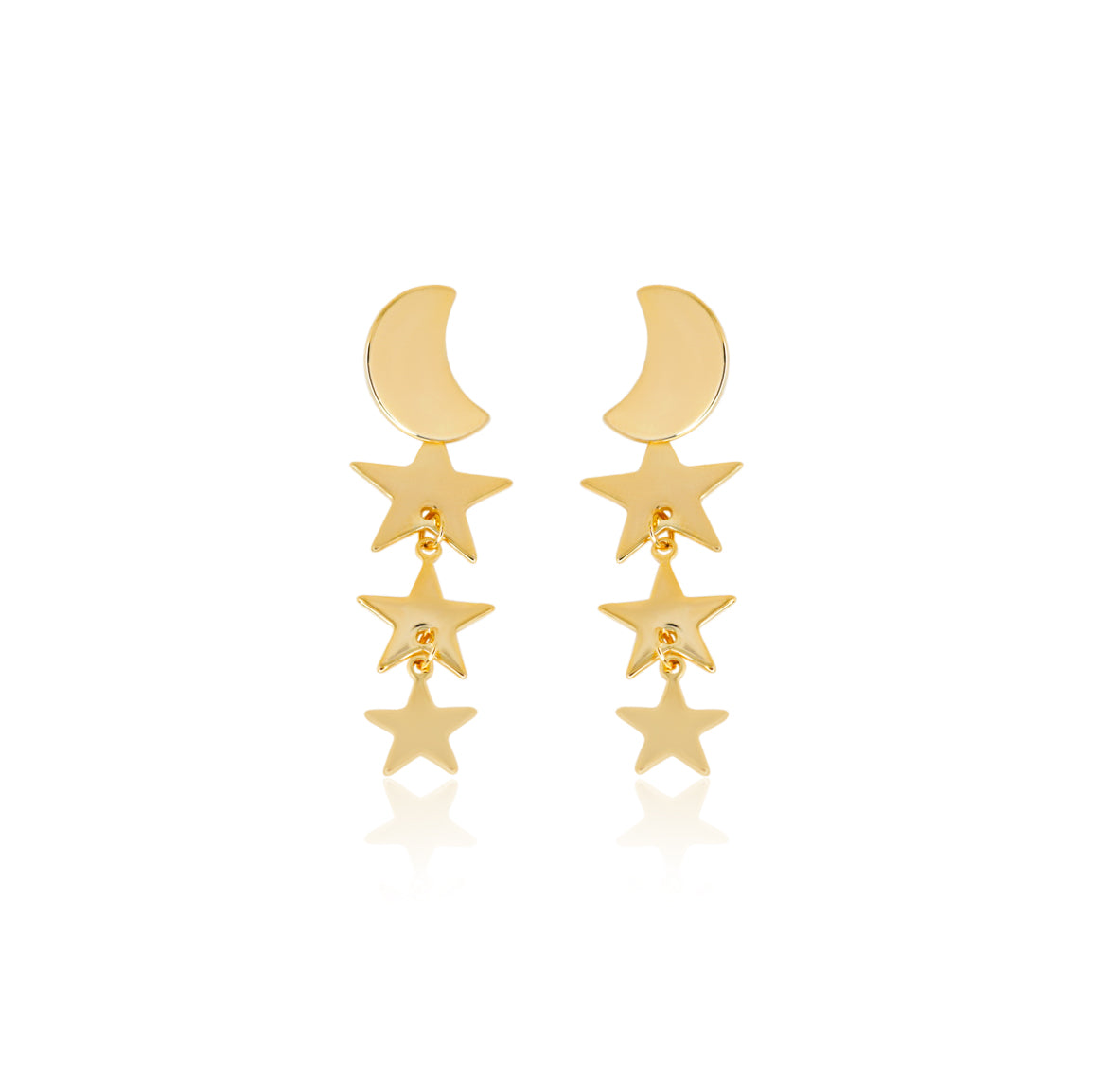 Our Half Moon & Stars earrings are an irresistible pairing of brass and 14K gold plating. These dainty, simple studs will become your go-to earrings for any occasion. Our moonlight stud earrings are a must-have for all ladies.