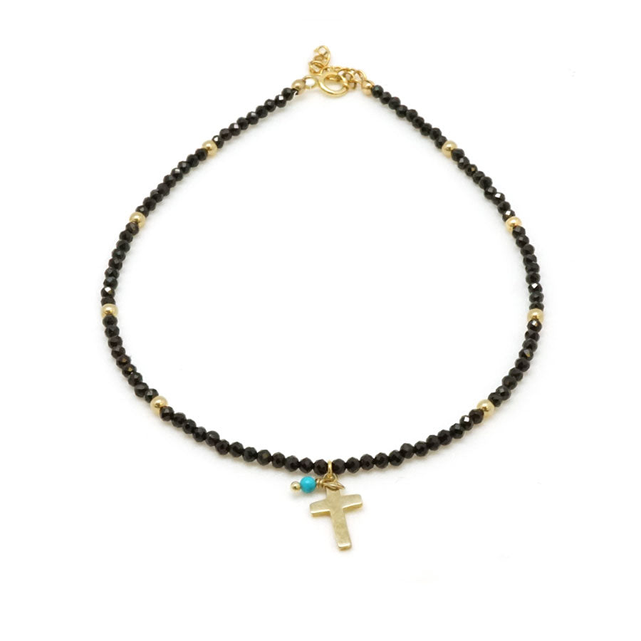 Style: Delicate Plain Cross with Turquoise Dot Black Spinel Beaded Choker