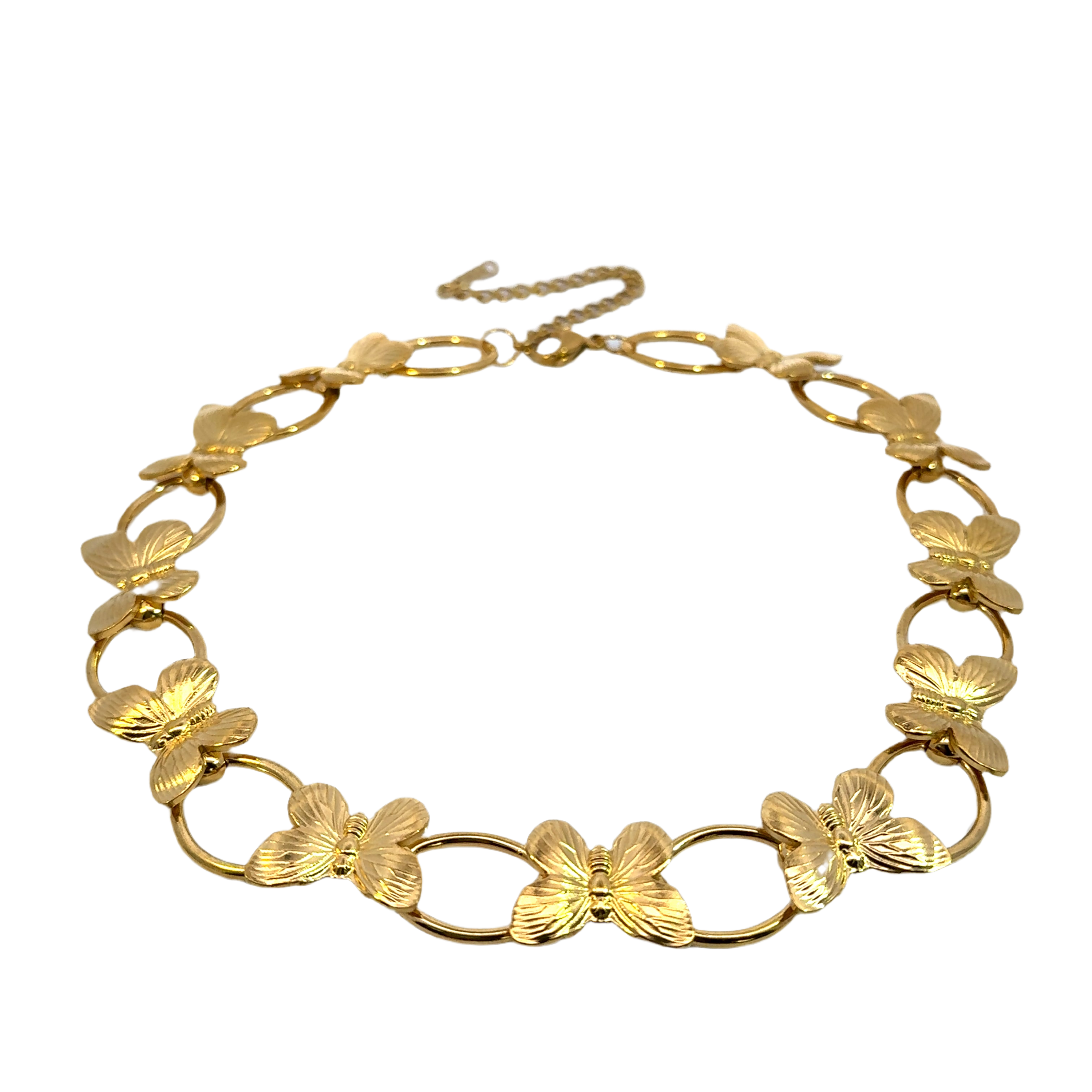 The Vintage Butterfly Necklace is also gold plated with 14K, which adds a luxurious and elegant touch to the piece. The gold plating is a durable and long-lasting material that is resistant to wear and tear, ensuring that the necklace will maintain its beautiful appearance for years to come. The gold plating also adds a touch of sophistication to the design, making it perfect for both casual and formal occasions.