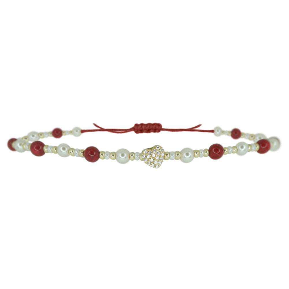 Style: Handmade CZ Heart Beaded Miyuki and Pearls Adjustable Bracelet