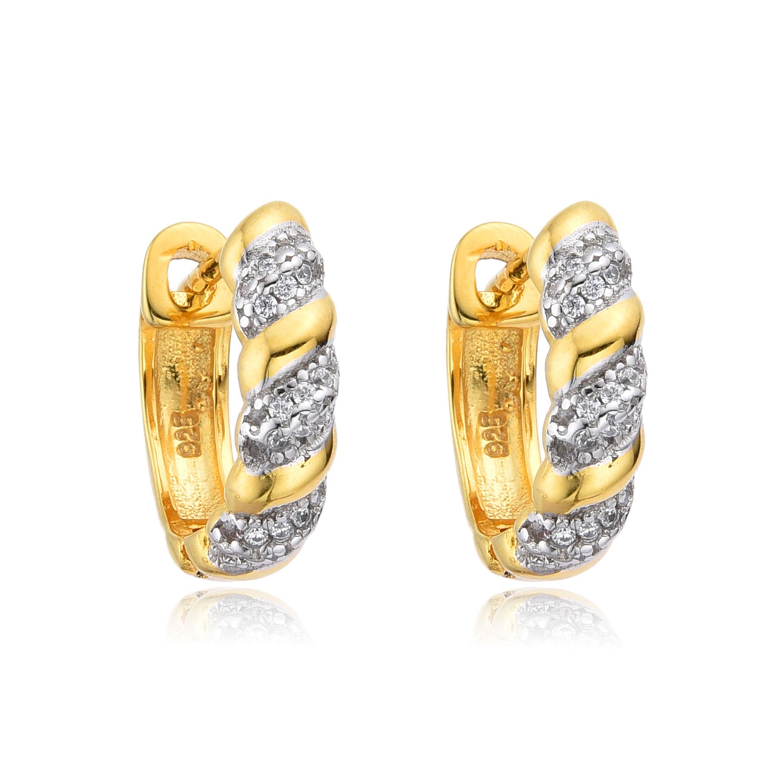 Upgrade your earring game with our Twisted Two Tone Huggies. Made with Sterling Silver 925 and Gold plated 14K, these earrings are both stylish and durable. Perfect for any occasion, these huggies add a touch of elegance to any outfit.