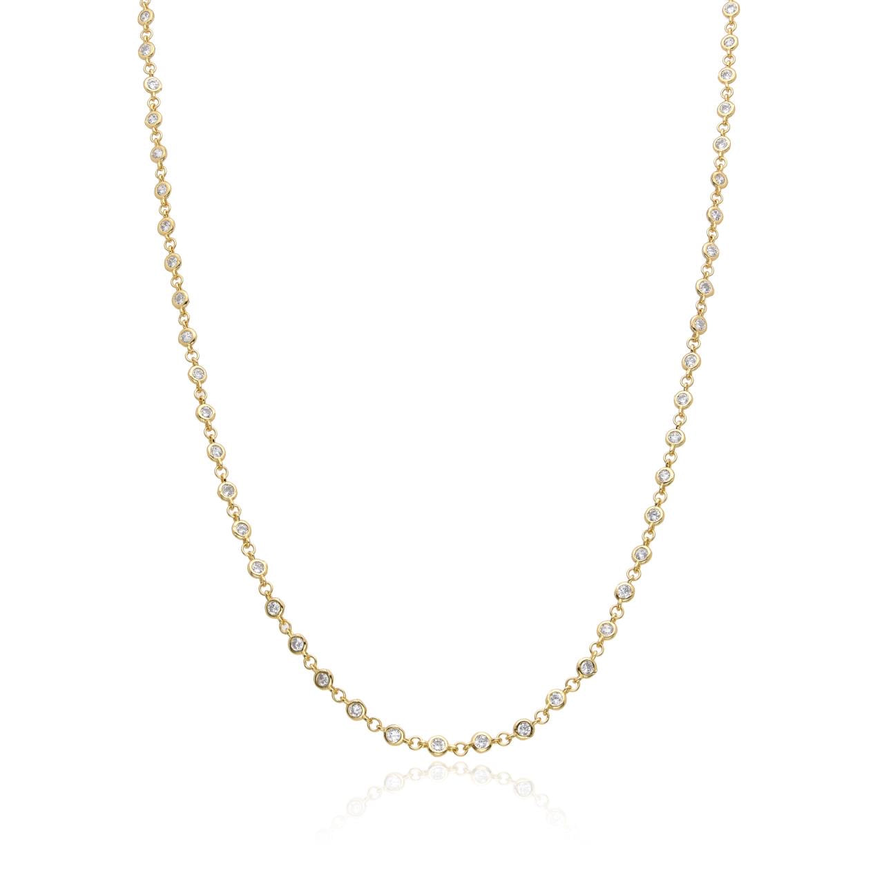 Our Diamond by the yard Necklace are made in Sterling Silver 925 and cubic zirconia, Gold plated 14K