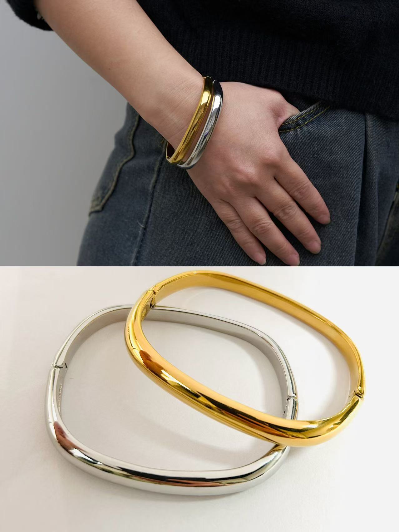 * Elegant Design: Our Square Plains Bracelet is a stylish accessory that complements any outfit. It features a sleek square design, perfect for those who love modern fashion. The bracelet is available in gold and silver colors, offering versatile styling options.