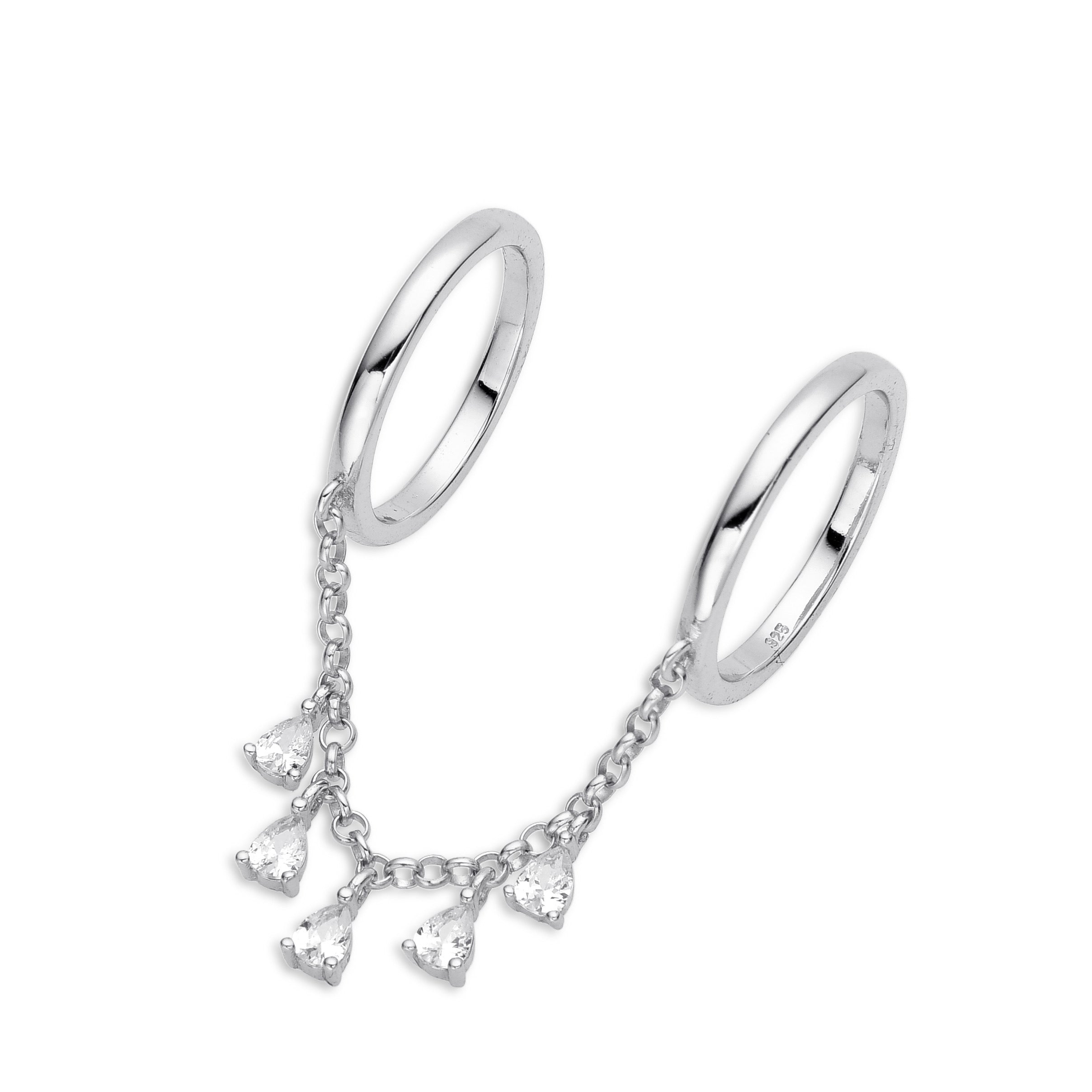 Expertly crafted from Sterling Silver 925 and 14K Gold plating, our Dangle Cz Chain Ring shines with stunning Clear Cz accents. Elevate any outfit with this elegant and timeless piece, perfect for any occasion. Upgrade your jewelry collection with our Dangle Cz Chain Ring today.