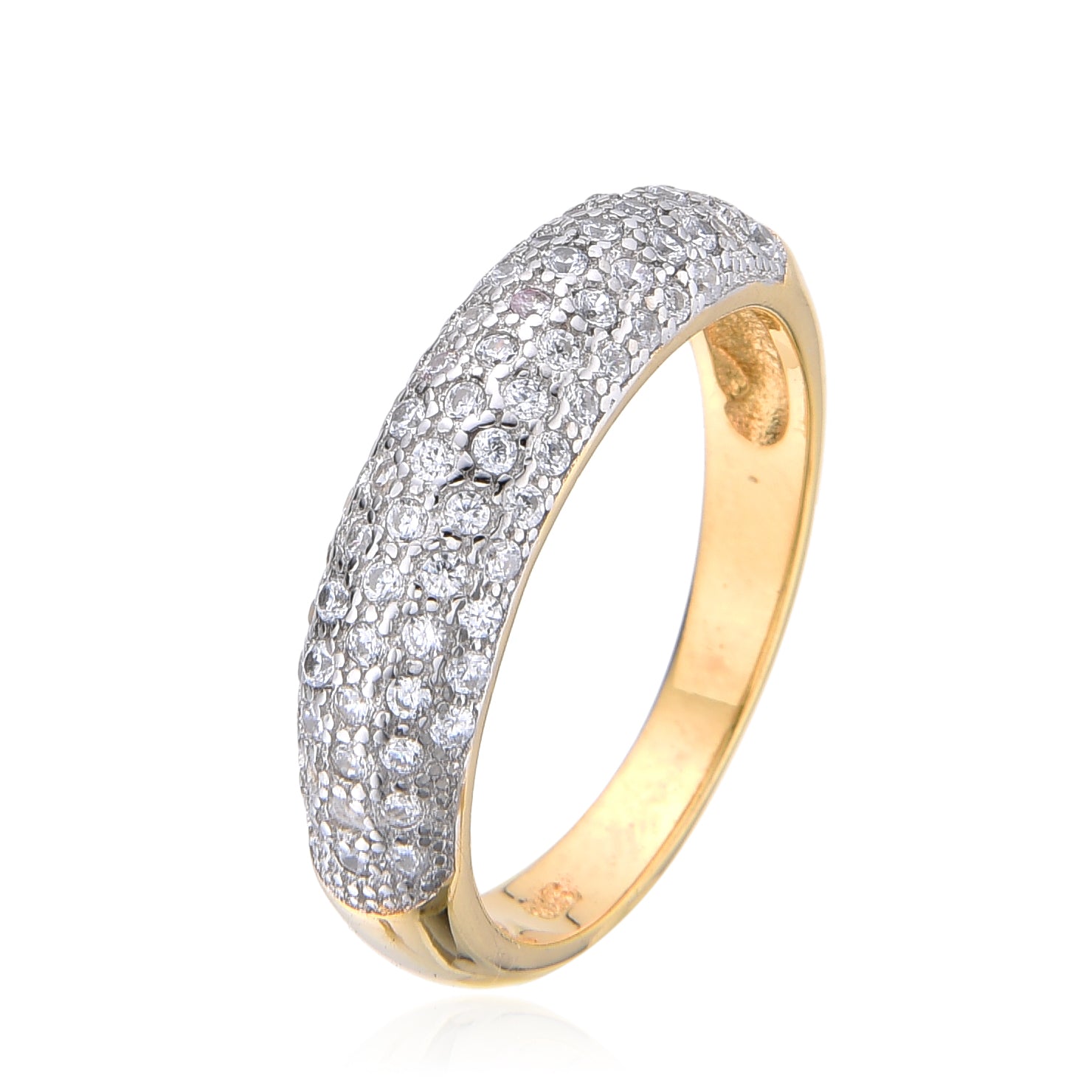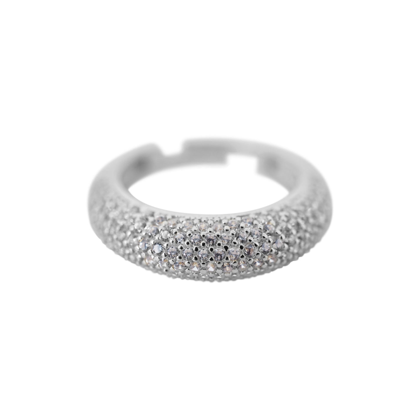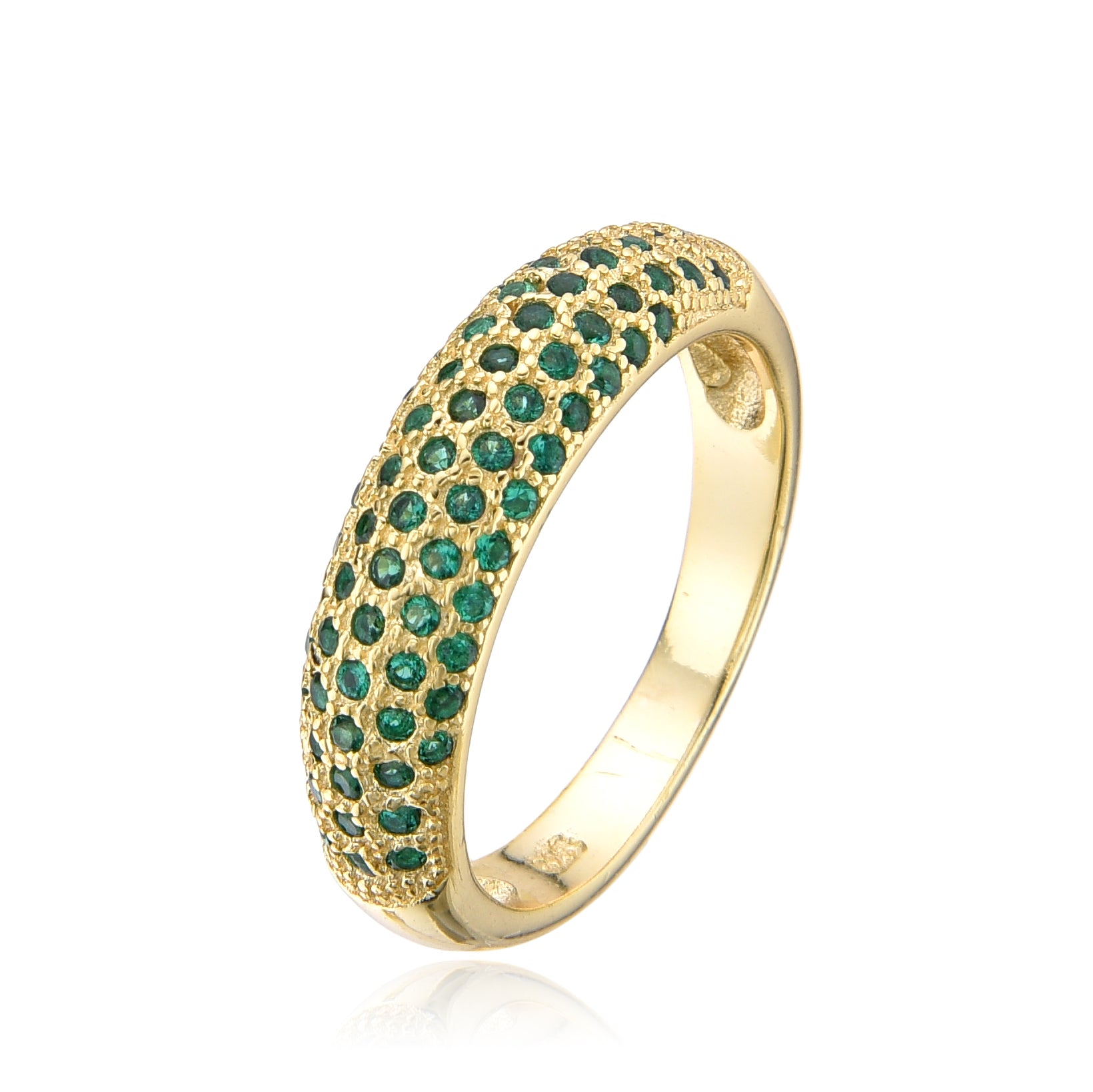 The Gianna ring features cubic zirconia stones encrusted on the band, which adds a touch of sparkle and glamour to the ring. These stones are carefully crafted to mimic the look of diamonds, making the ring a perfect alternative for those who want to enjoy the look of a diamond without the high price tag.