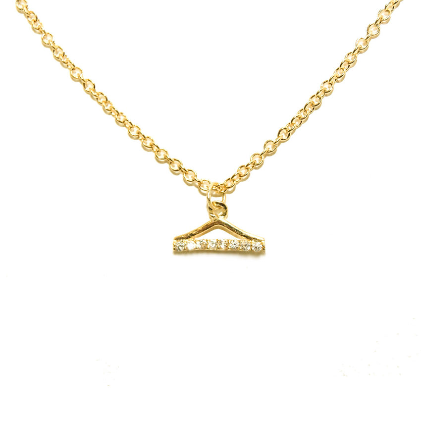 The Ava Necklace is a modern take on the classic clothespin. The necklace features a single, genuine, cubed zircon accent that sits beautifully next to the gold plated metal. Not only can you wear the necklace alone, it also makes a great accessory to add to your favorite outfit!