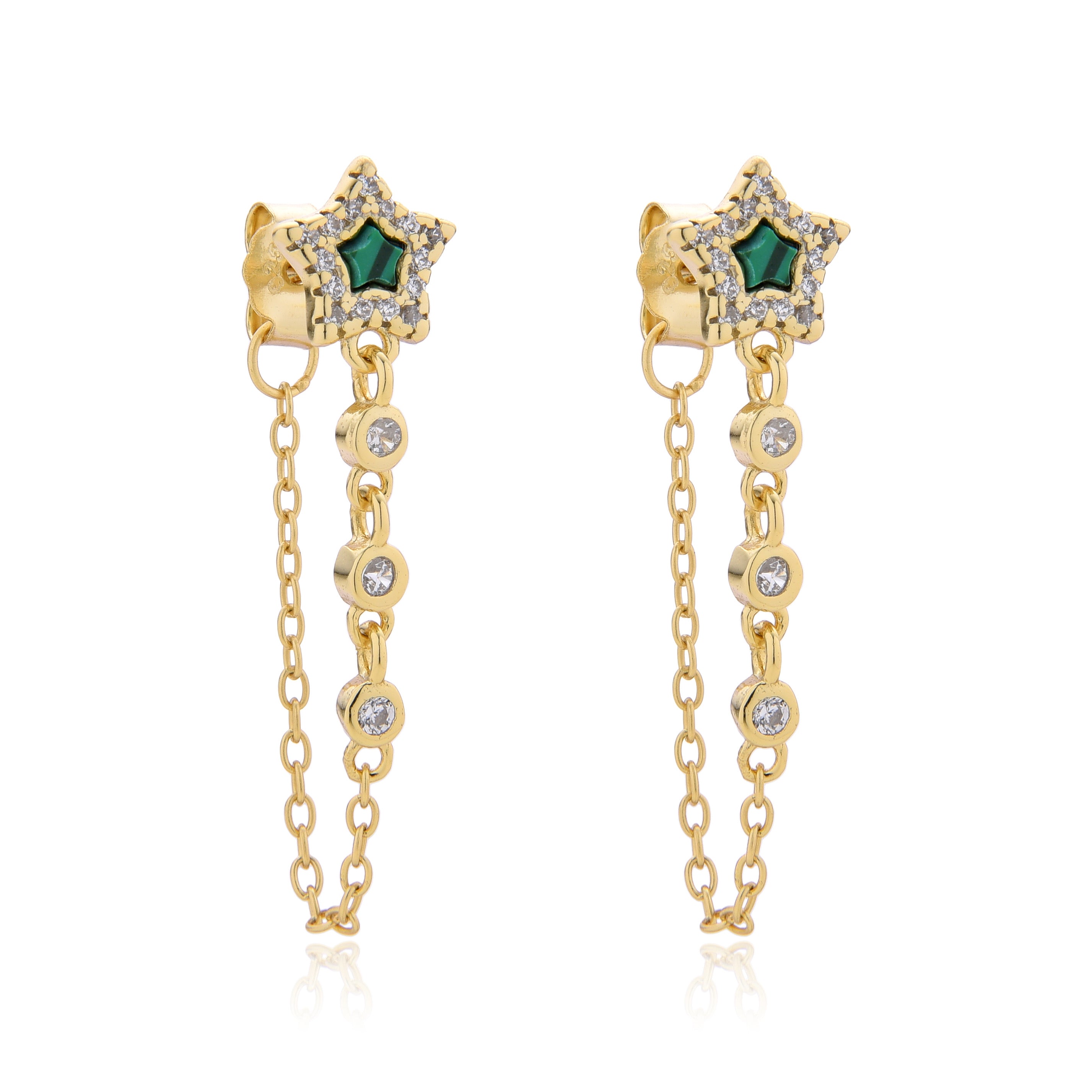 Sterling Silver 925, Gold Plated 14K and Clear Cz. The stones are Malachite, Lapislazuli and Mother of Pearl.
