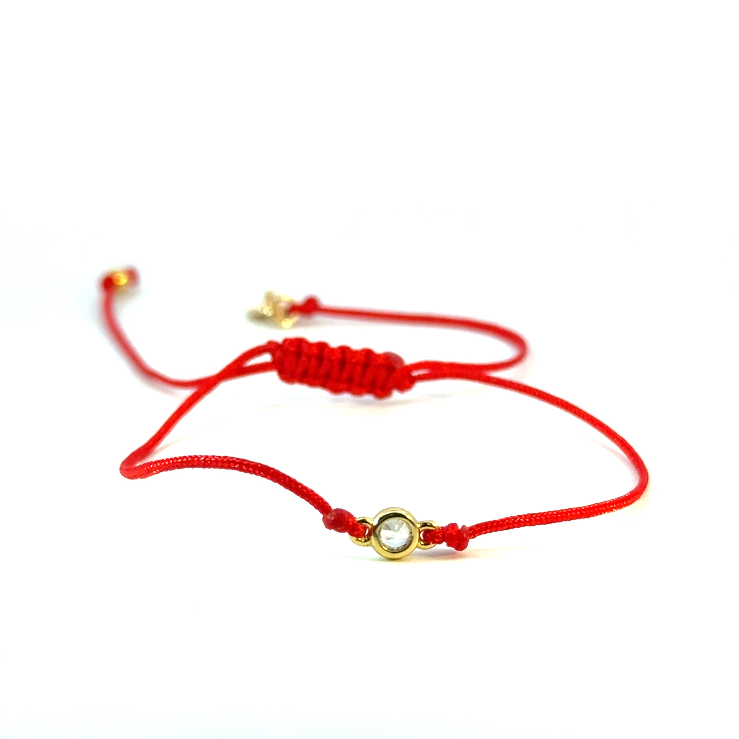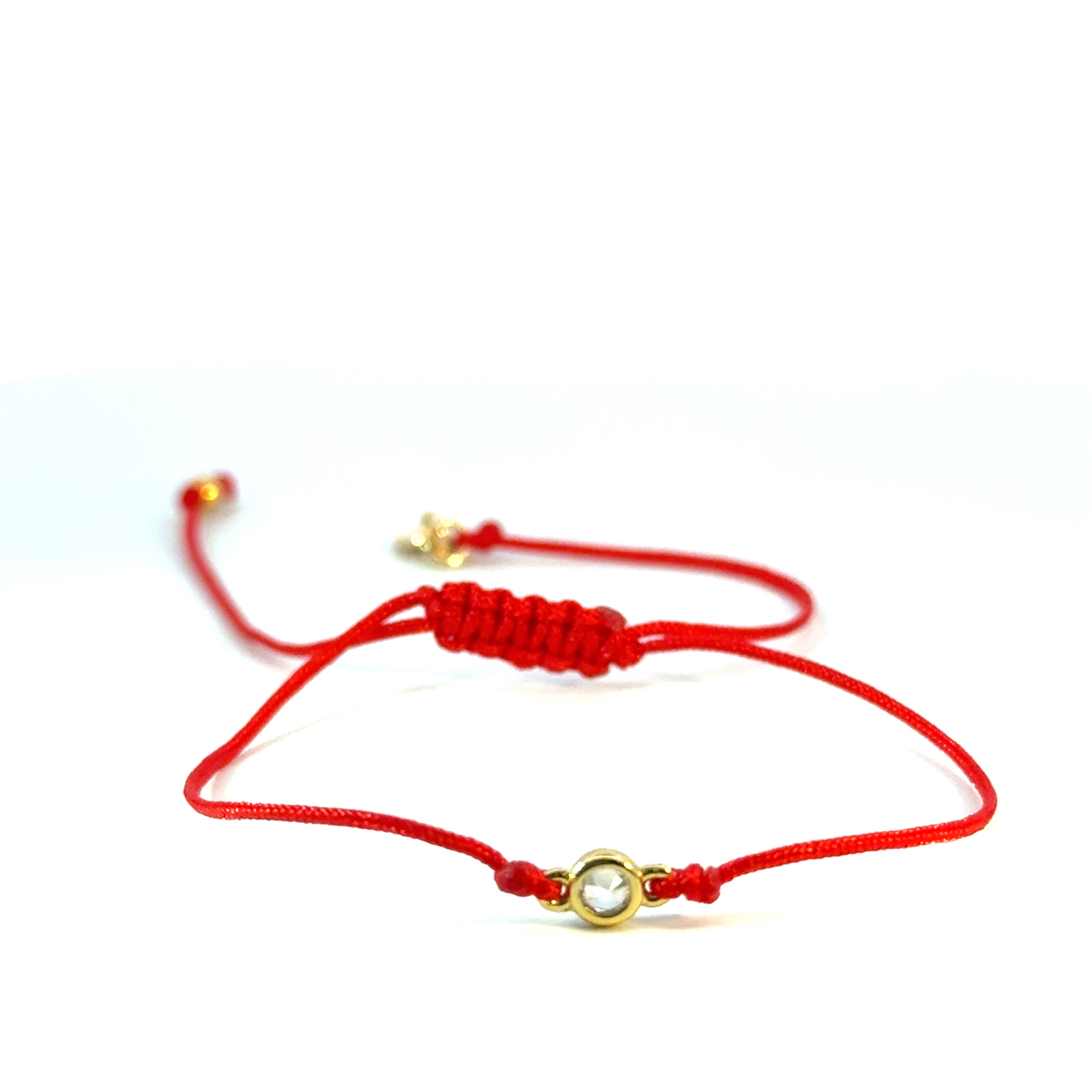 This Clear Bezel Red String Bracelet is crafted with Brass and Gold plated with 14K, ensuring durability and a luxurious finish. The adjustable design allows for a perfect fit. Wear it for protection and blessings.
