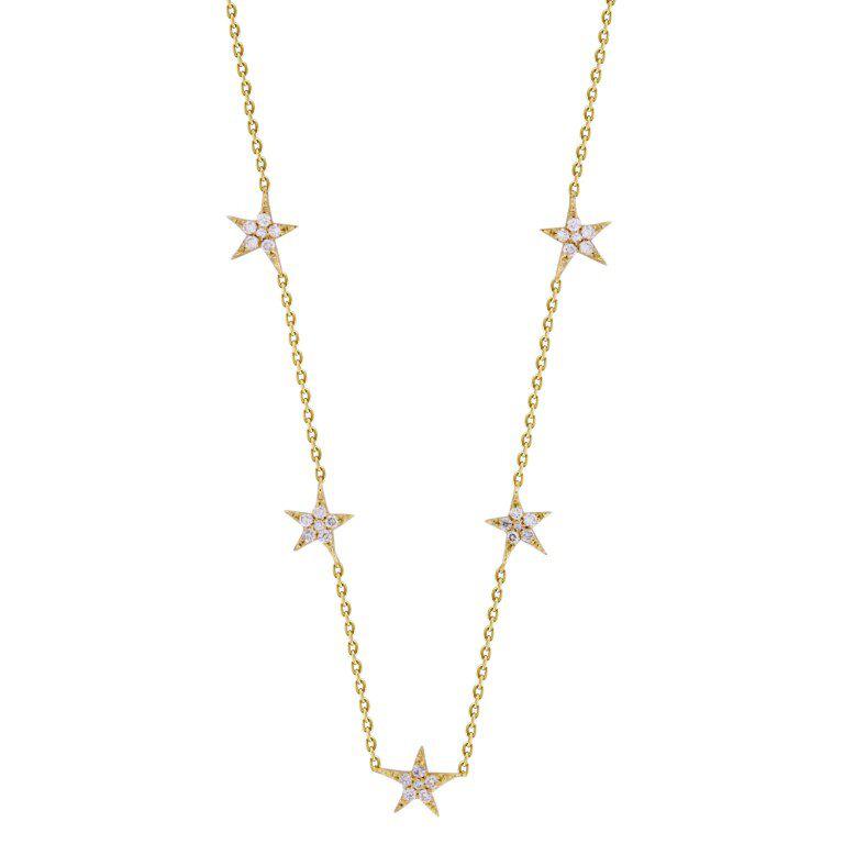 The tiny pave stars add a delicate and feminine touch to the necklace, making it a great choice for those who prefer a subtle yet elegant look. The 14K gold plating provides a durable and long-lasting finish, ensuring that the necklace will remain beautiful for years to come.