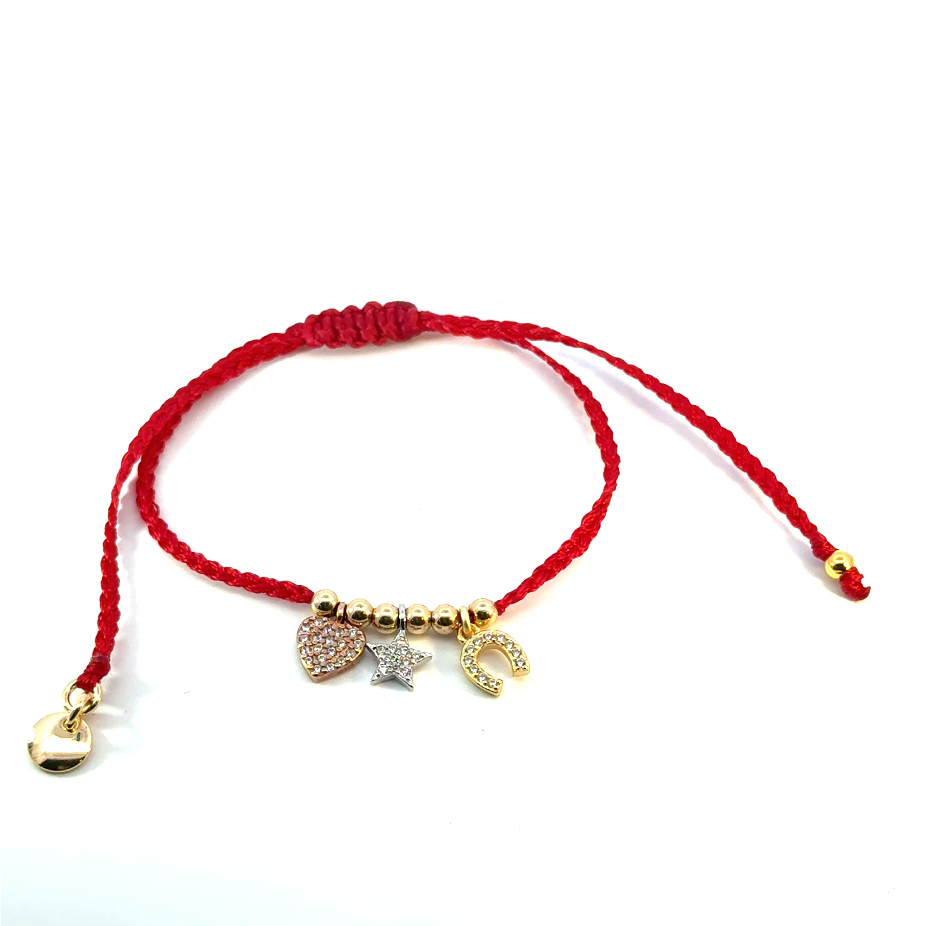 This Red String Charms Bracelet boasts high-quality materials like Sterling Silver 925, Gold plated 14K, and Goldfilled Beads. Its adjustable design fits comfortably and adds a touch of good luck to any outfit. Elevate your style with this elegant and auspicious accessory.